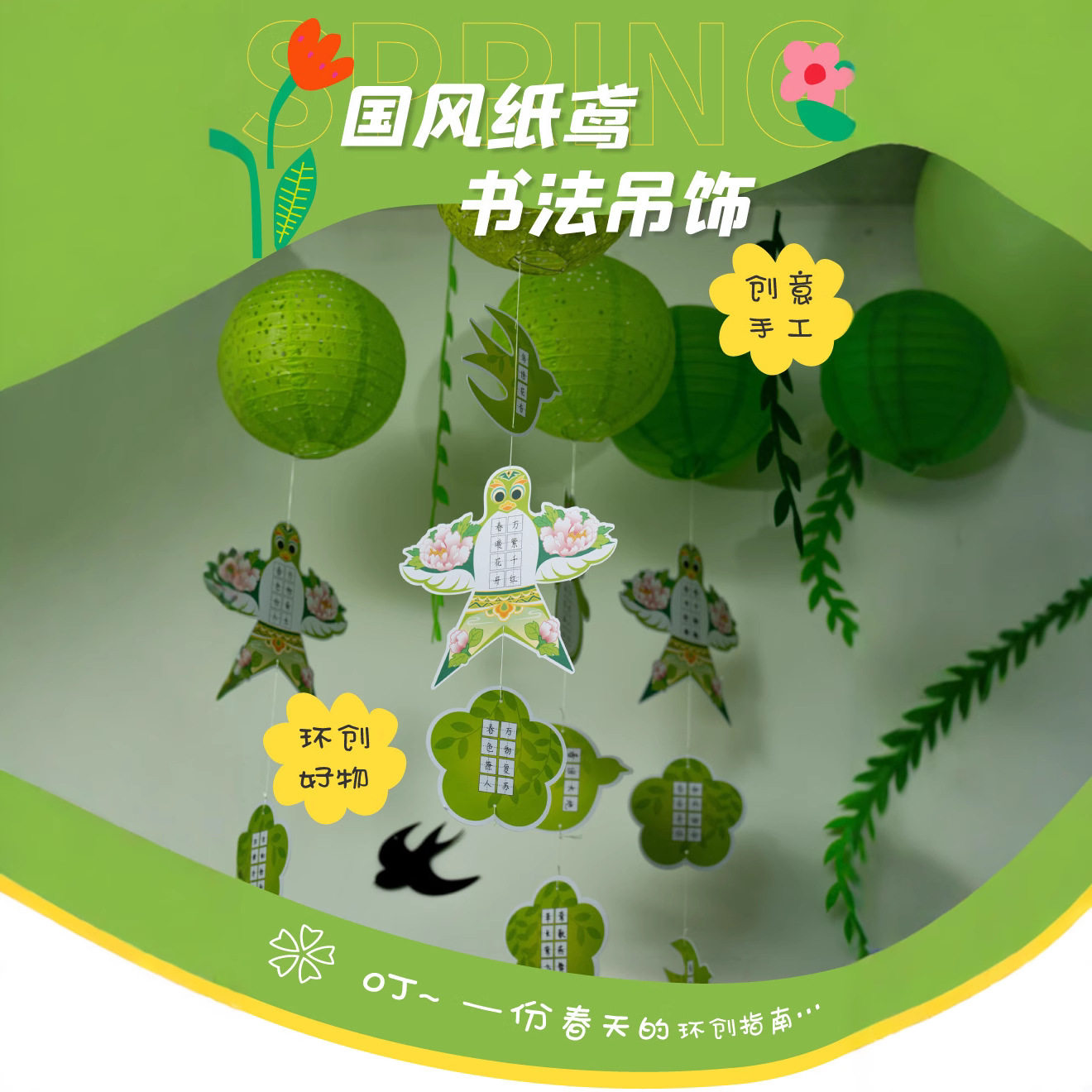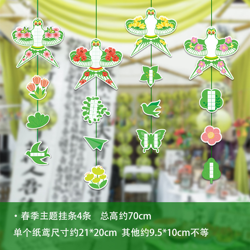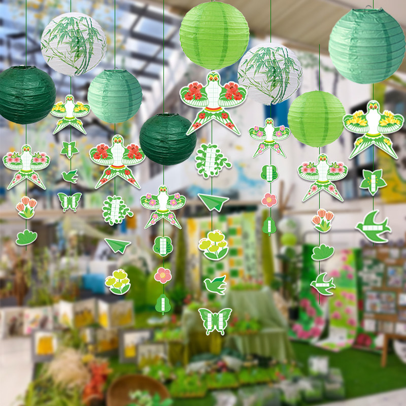 五一六一装饰绿色主题风筝纸鸢纸灯笼环创吊饰场景氛围布置挂饰