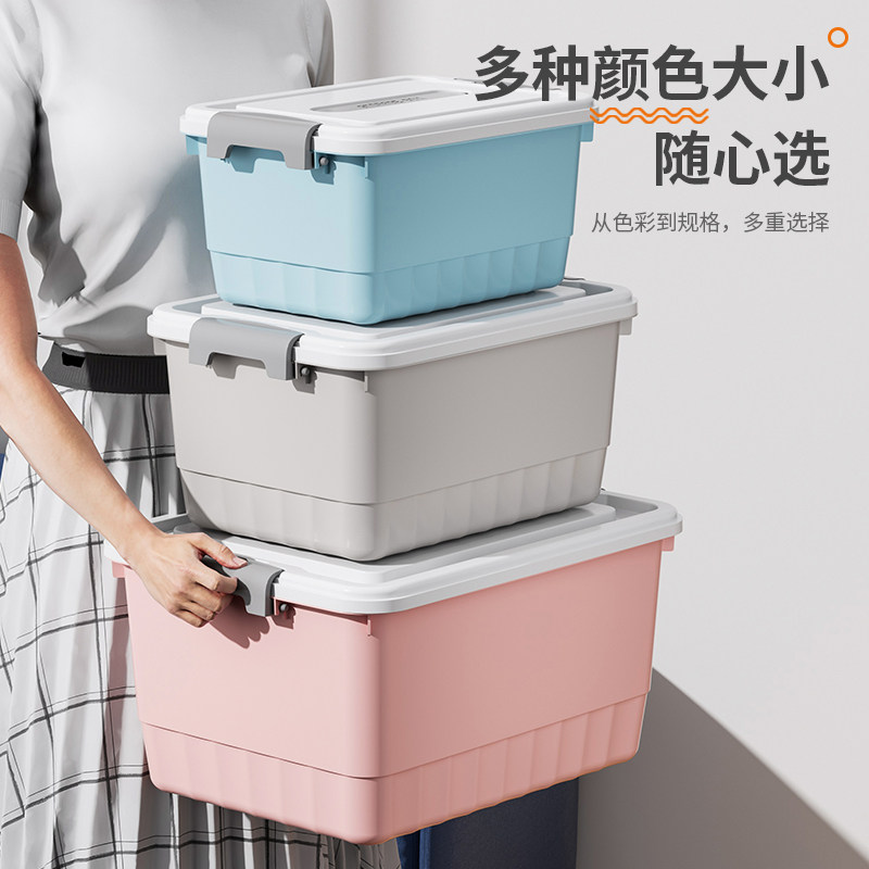 收纳箱带盖家用塑料玩具整理箱衣柜收纳盒周转箱提手储物箱零食箱