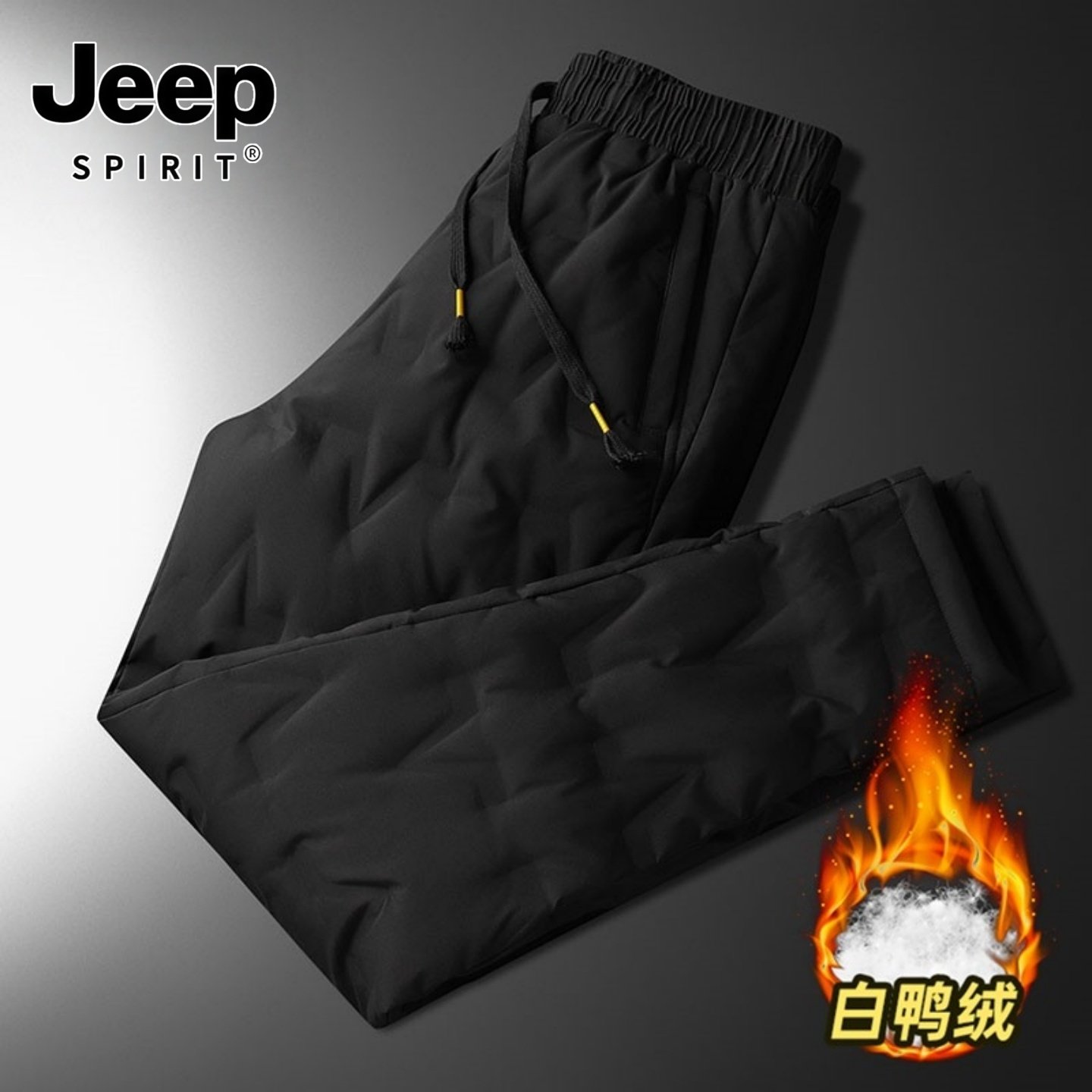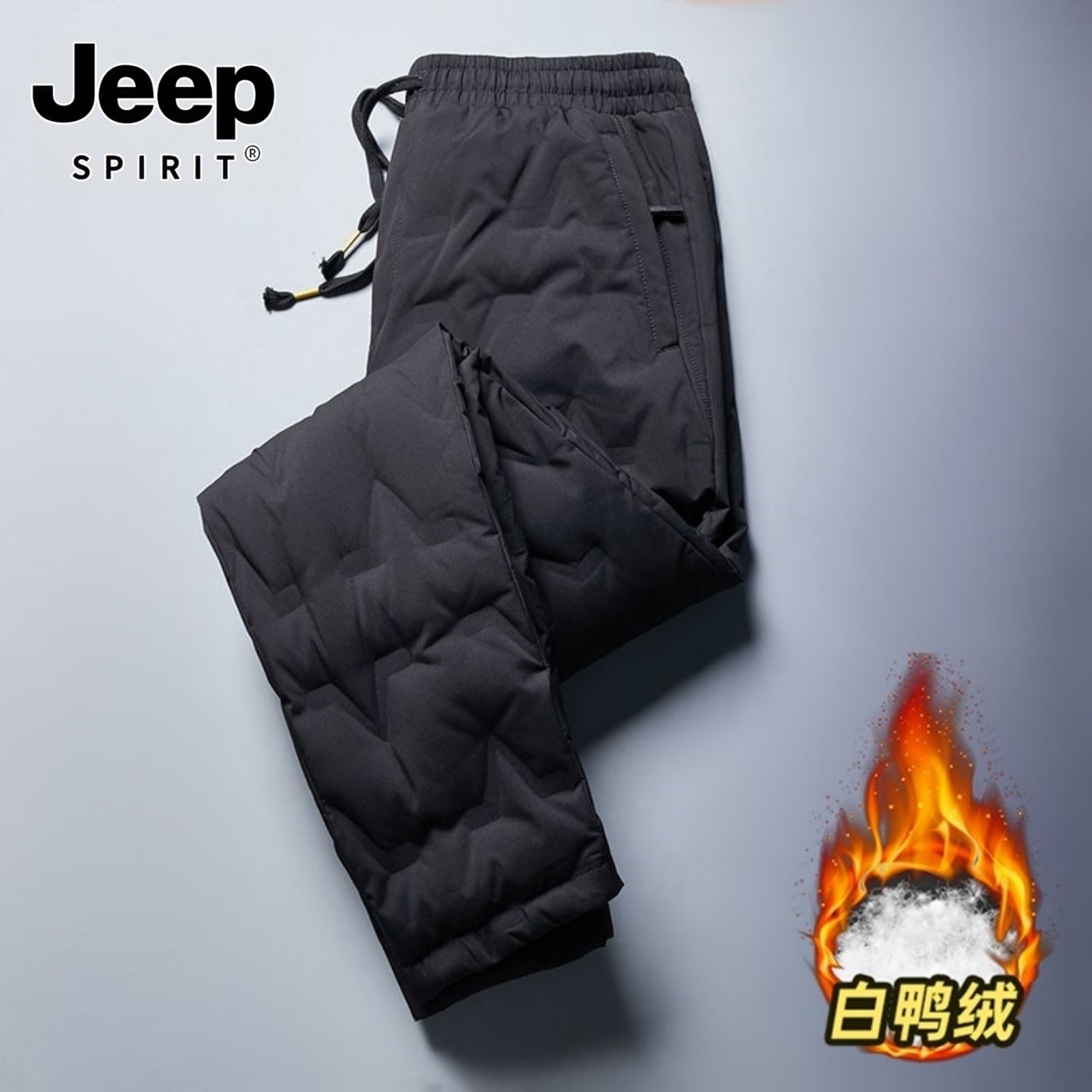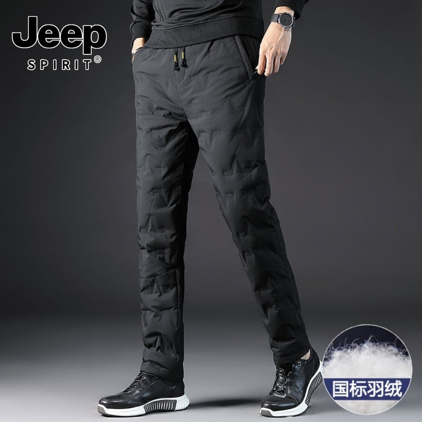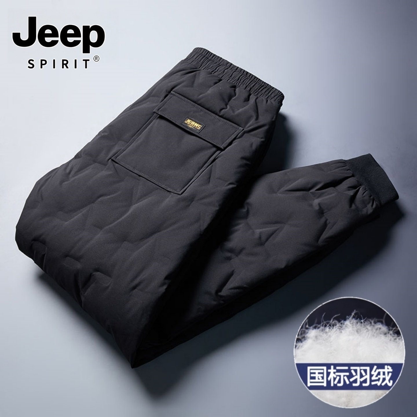 吉普羽绒裤男款冬季保暖卸寒爸爸外穿长裤子中老年冬装鸭绒休闲裤