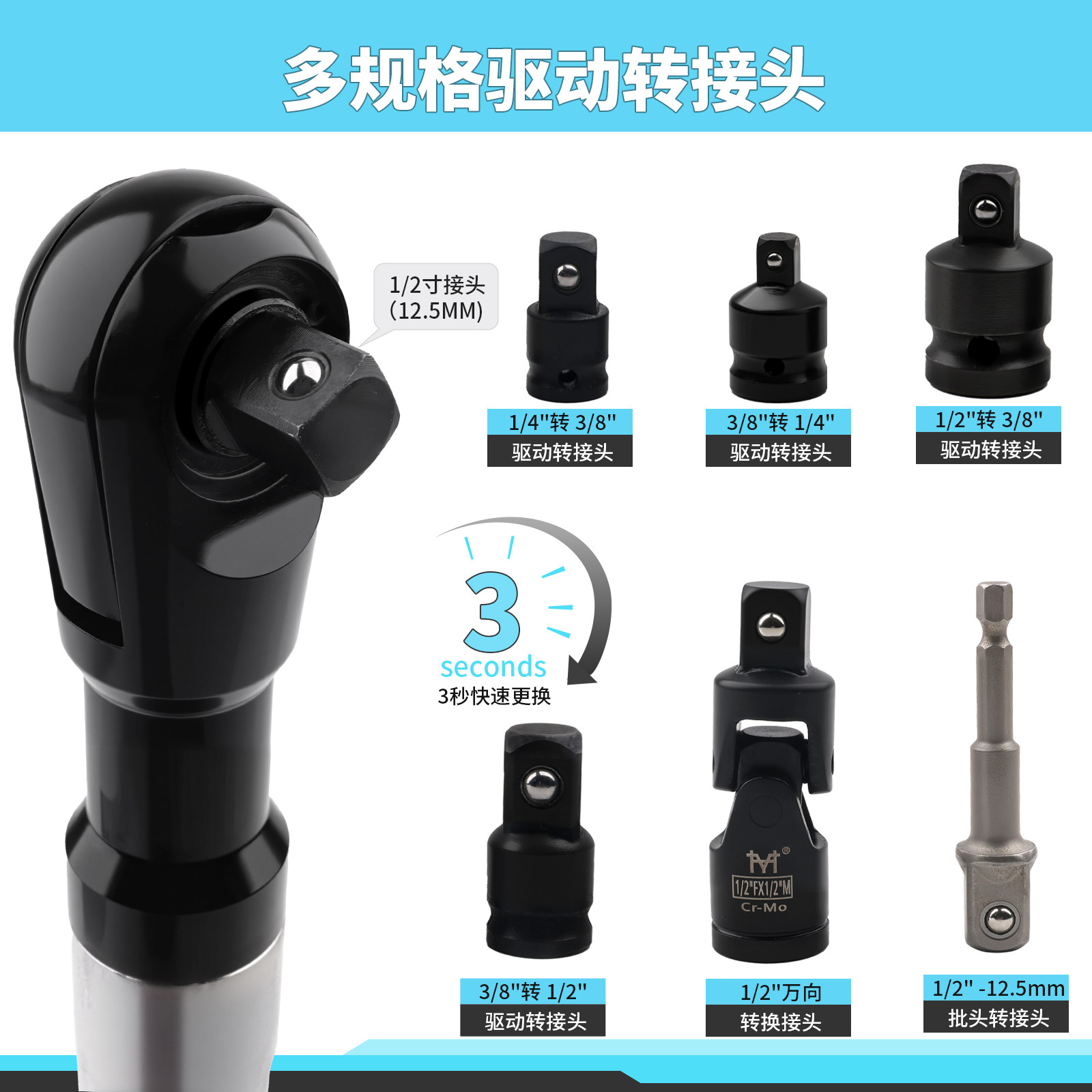 多功能三合一棘轮扳手延长90度电动气动狭窄直角旋耕机快速大扭力
