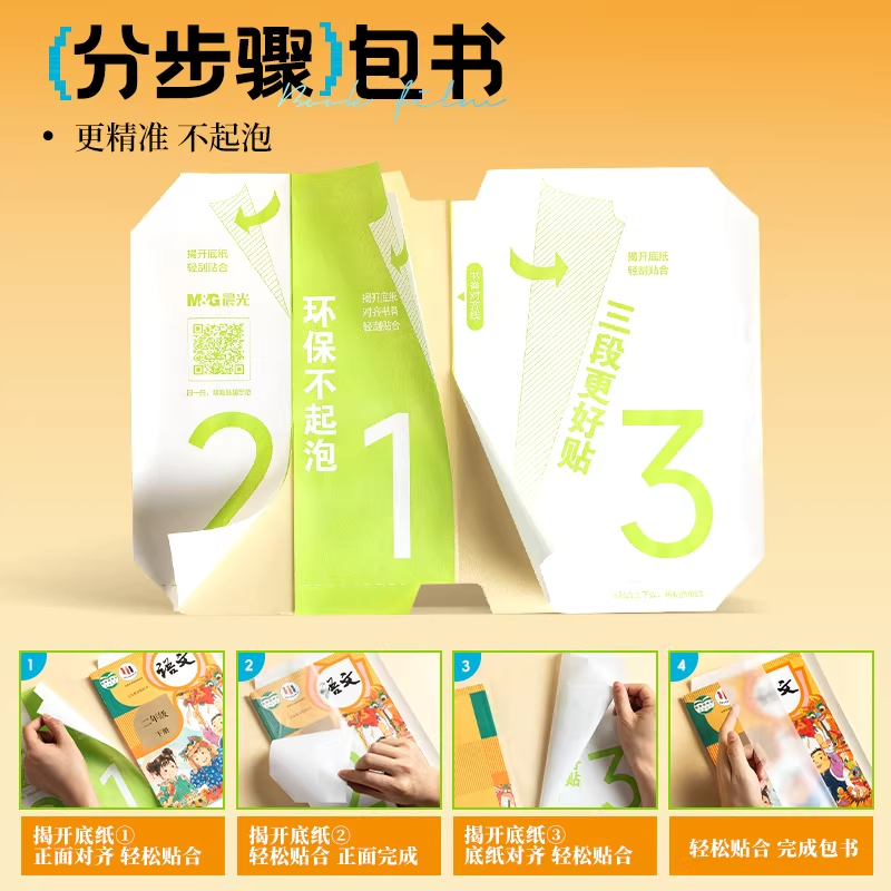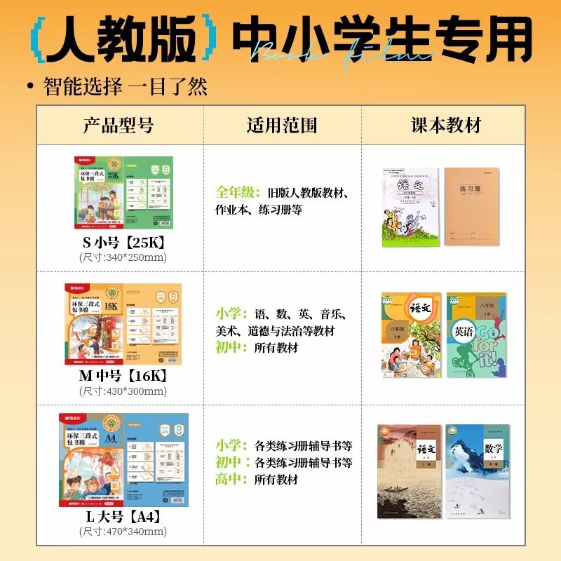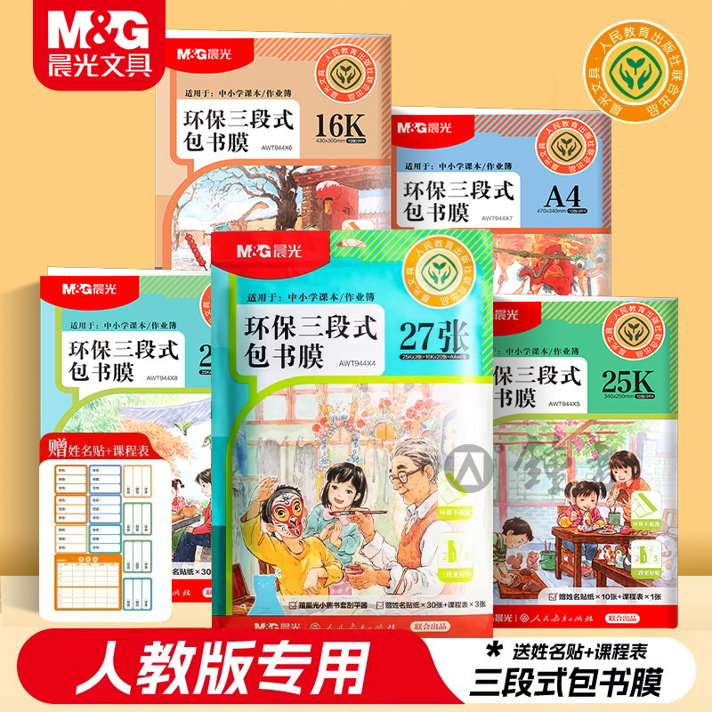 晨光人教版专用包书皮自粘三段式包书膜25K中小学生课本保护套A4纸塑装密封包书纸初中16K环保透明磨砂包书衣