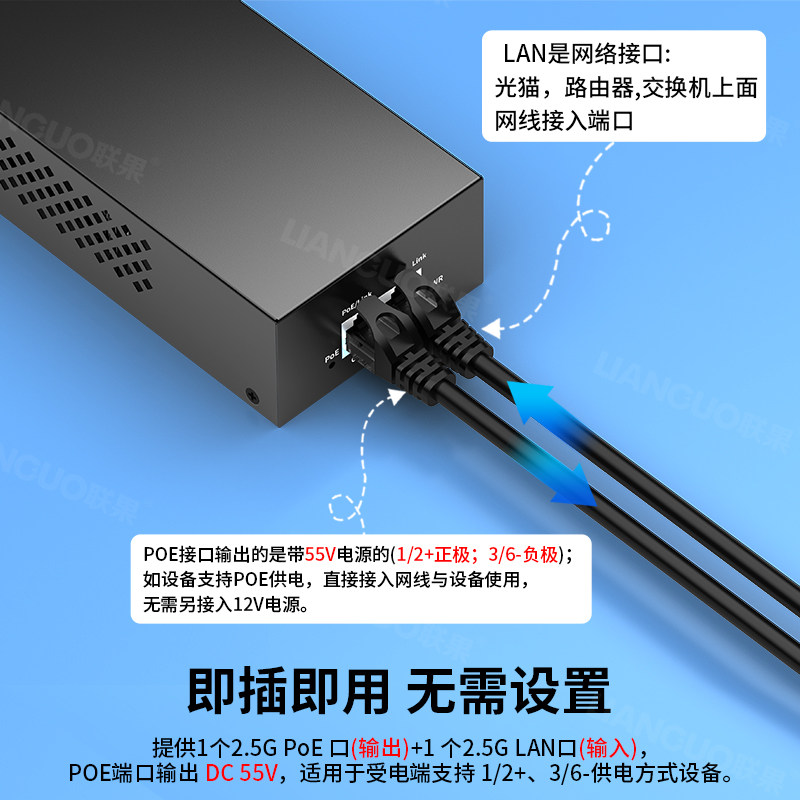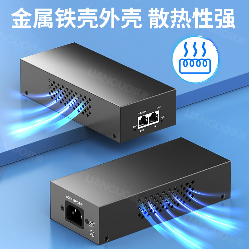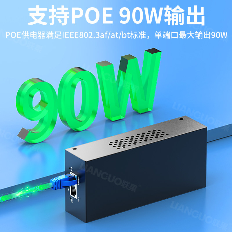 联果 2.5G POE供电器90W标准2.5G千兆POE供电模块 国标48V网络监控摄像头poe转换器60W 90W大功率AP供电器