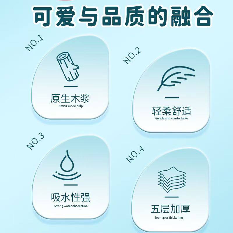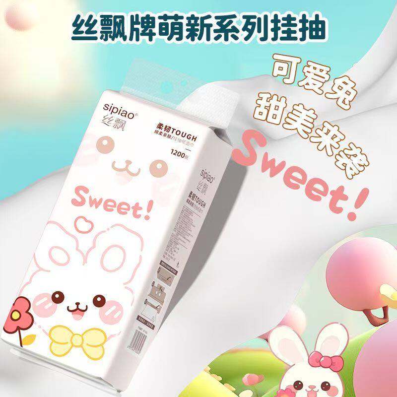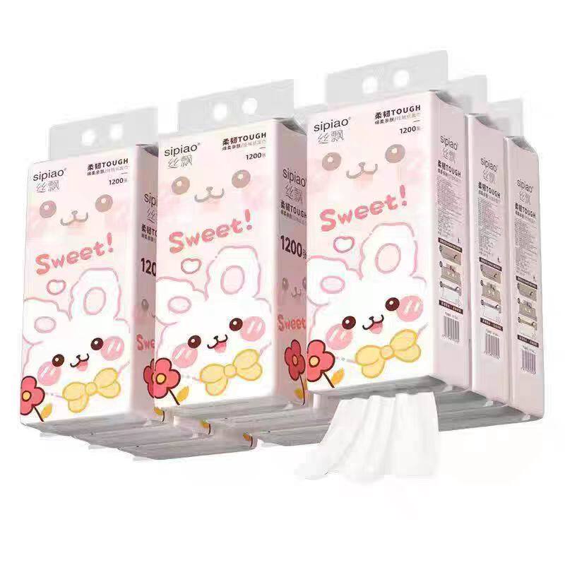 丝飘可爱小兔1200张/大提家用清洁纸宿舍卫生纸整箱实惠装可湿水