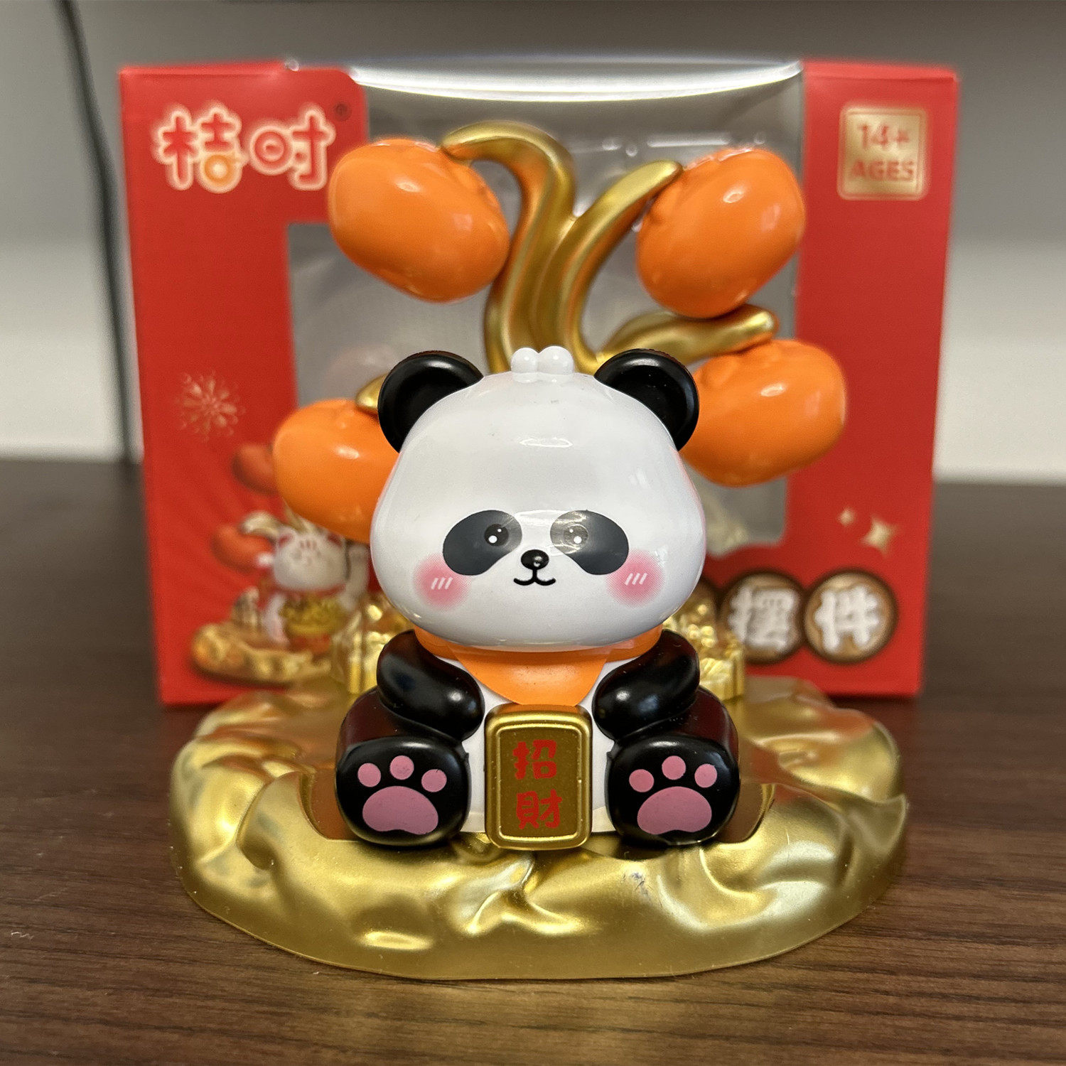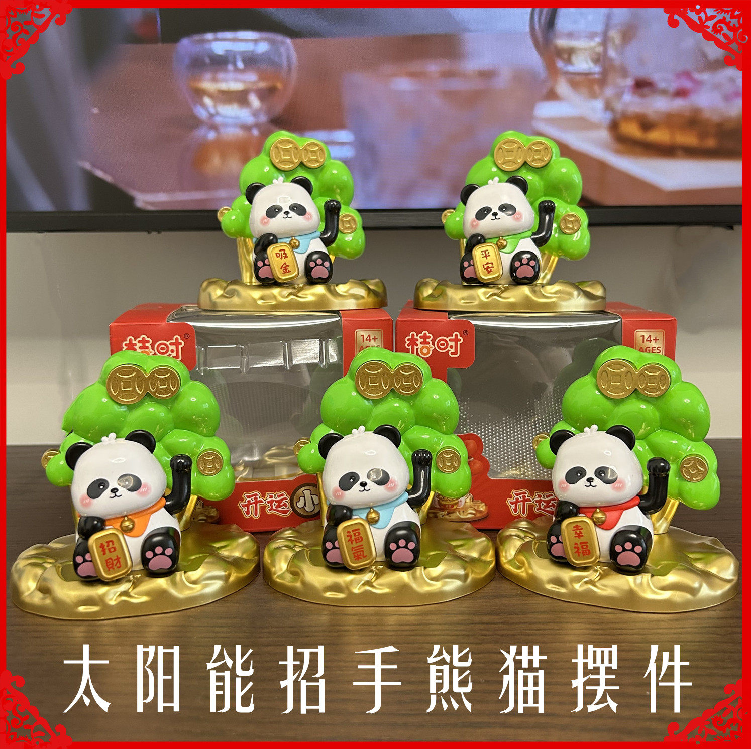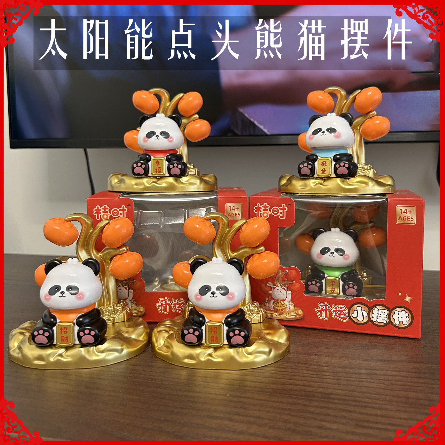 创意太阳能熊猫摆件新年礼盒礼品招手点头招财开运小摆件车载玩具