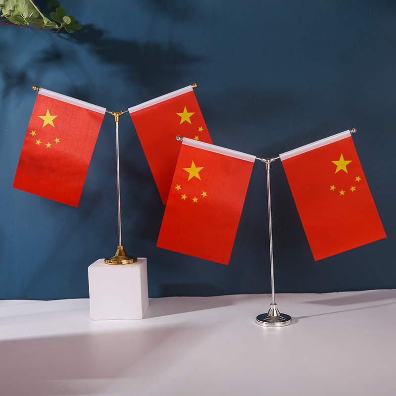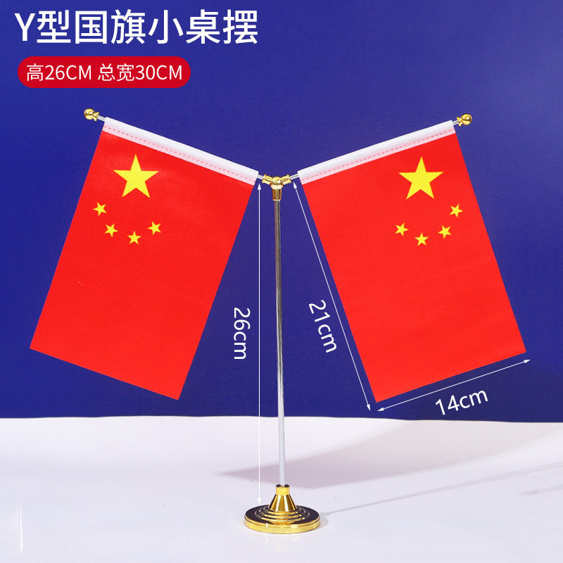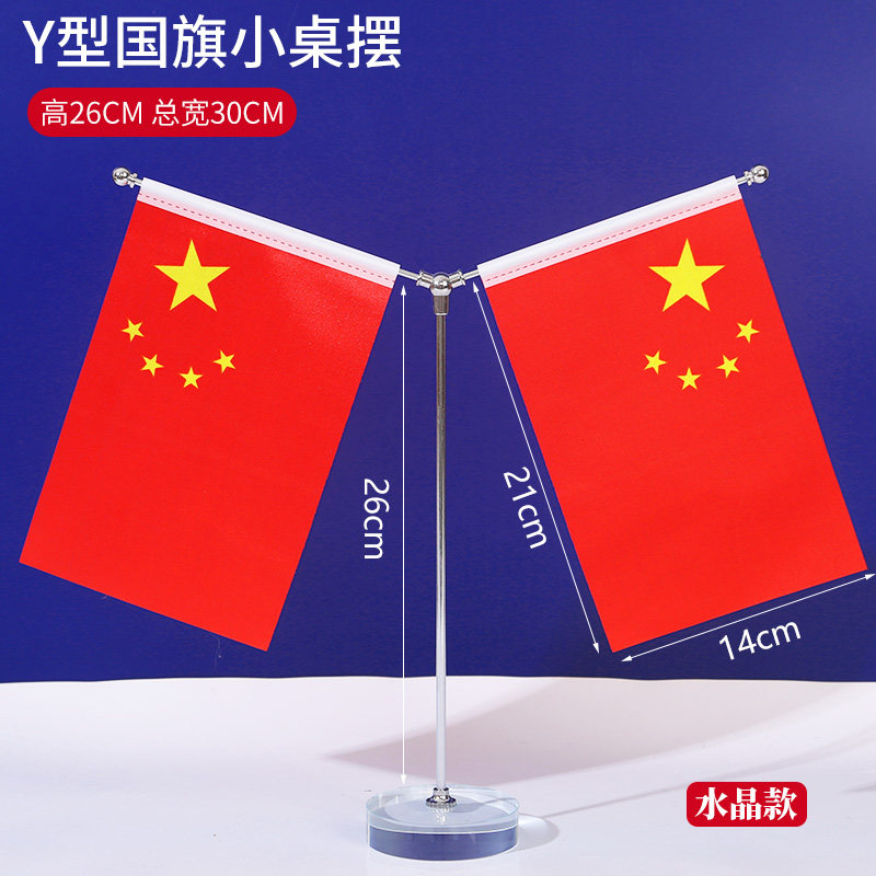 十一国庆节桌面装饰小红旗办公室会议室旗架Y型水晶桌摆氛围布置
