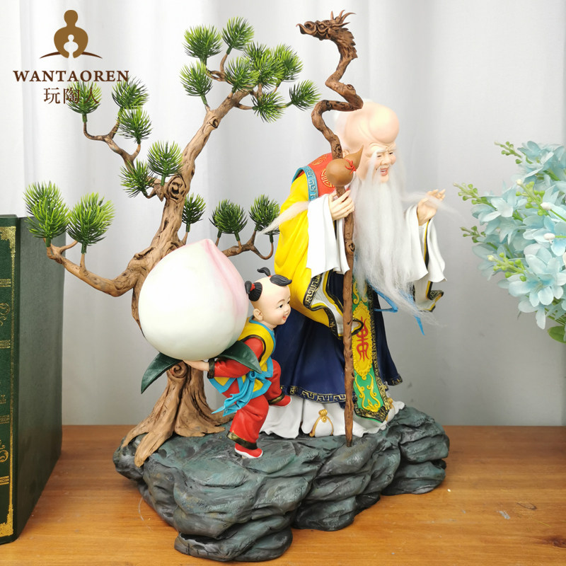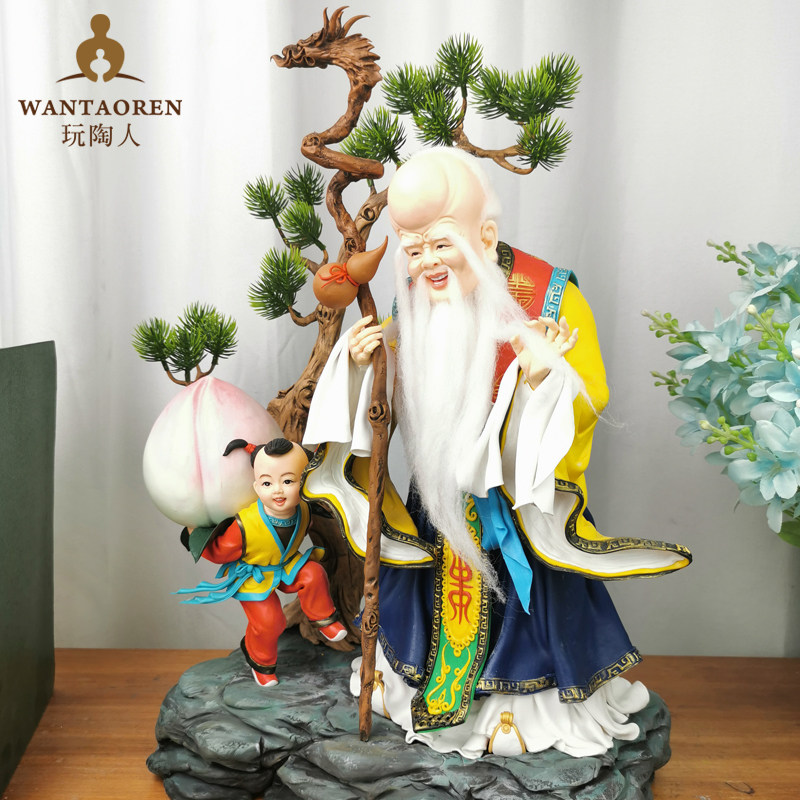 寿星公手工泥人泥塑中国传统人像面塑佛像神像结缘收藏大寿送礼