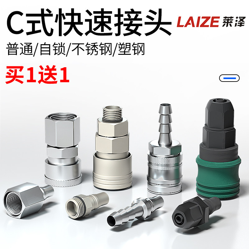 c式快速接头气管自锁接头不锈钢快装快插塑钢气动工具空压机对接