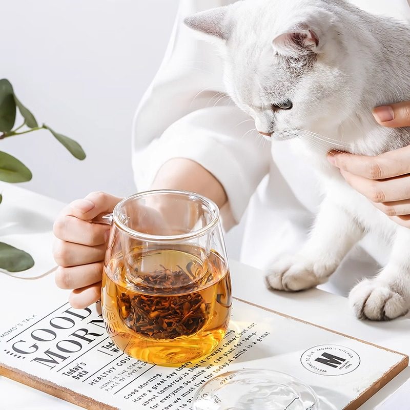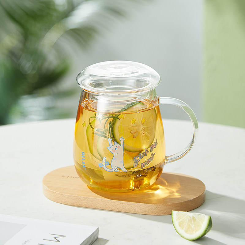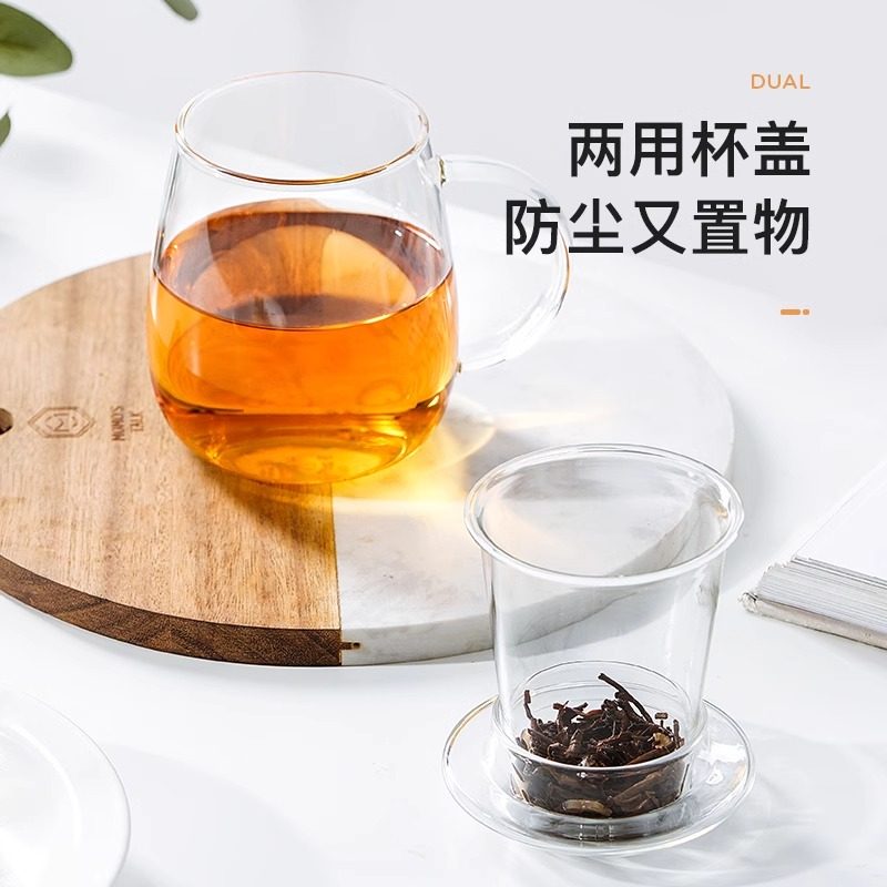 物生物玻璃杯女款家用泡茶水杯高颜值可爱花茶杯子男茶水分离