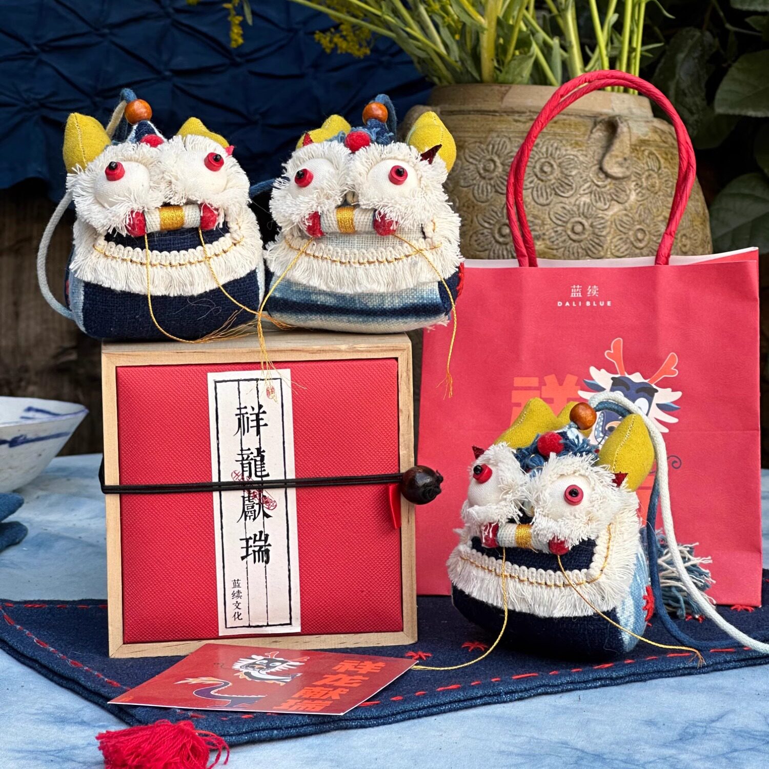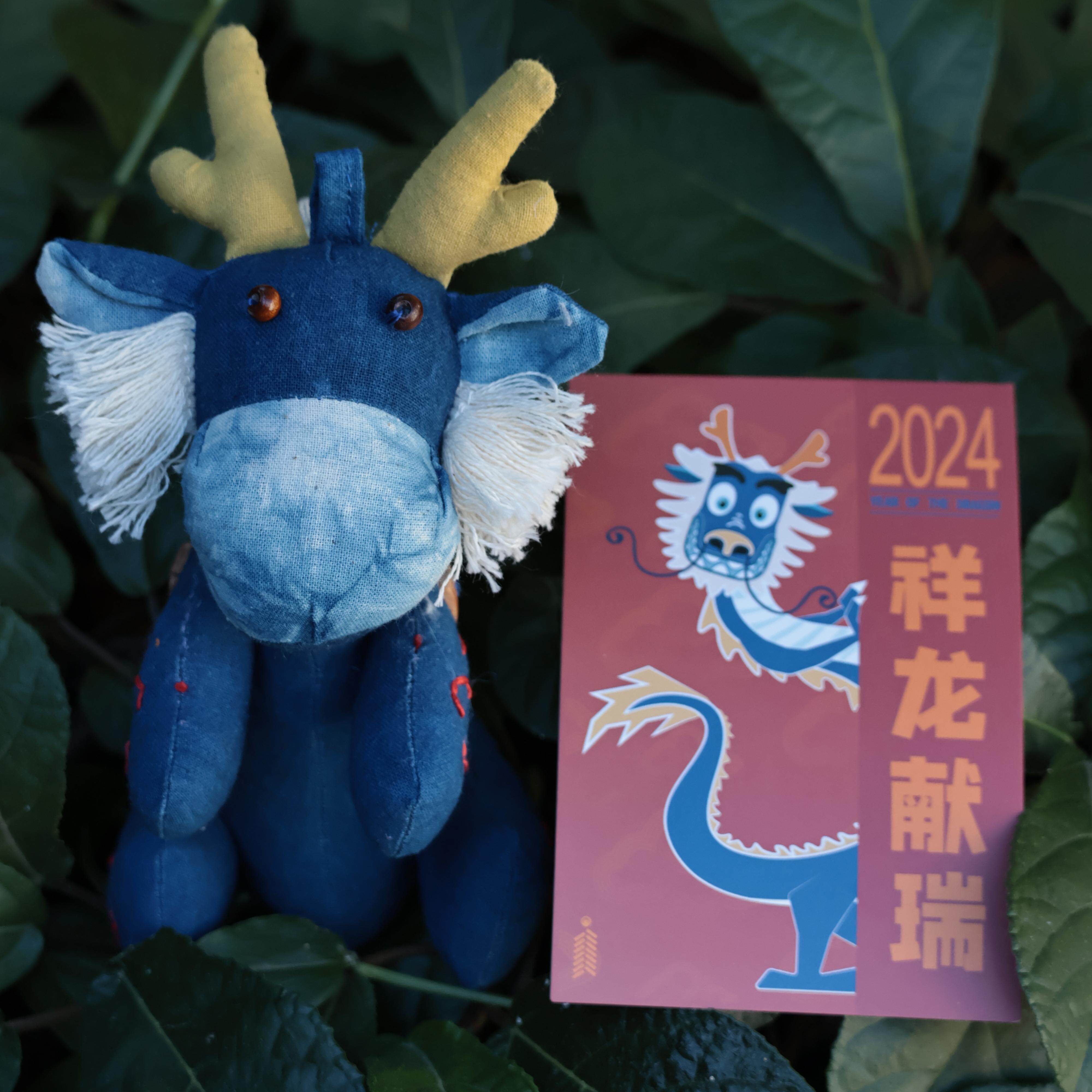 蓝续12生肖白族扎染原创伴手礼系列/扎染龙年伴手礼云南扎染小龙