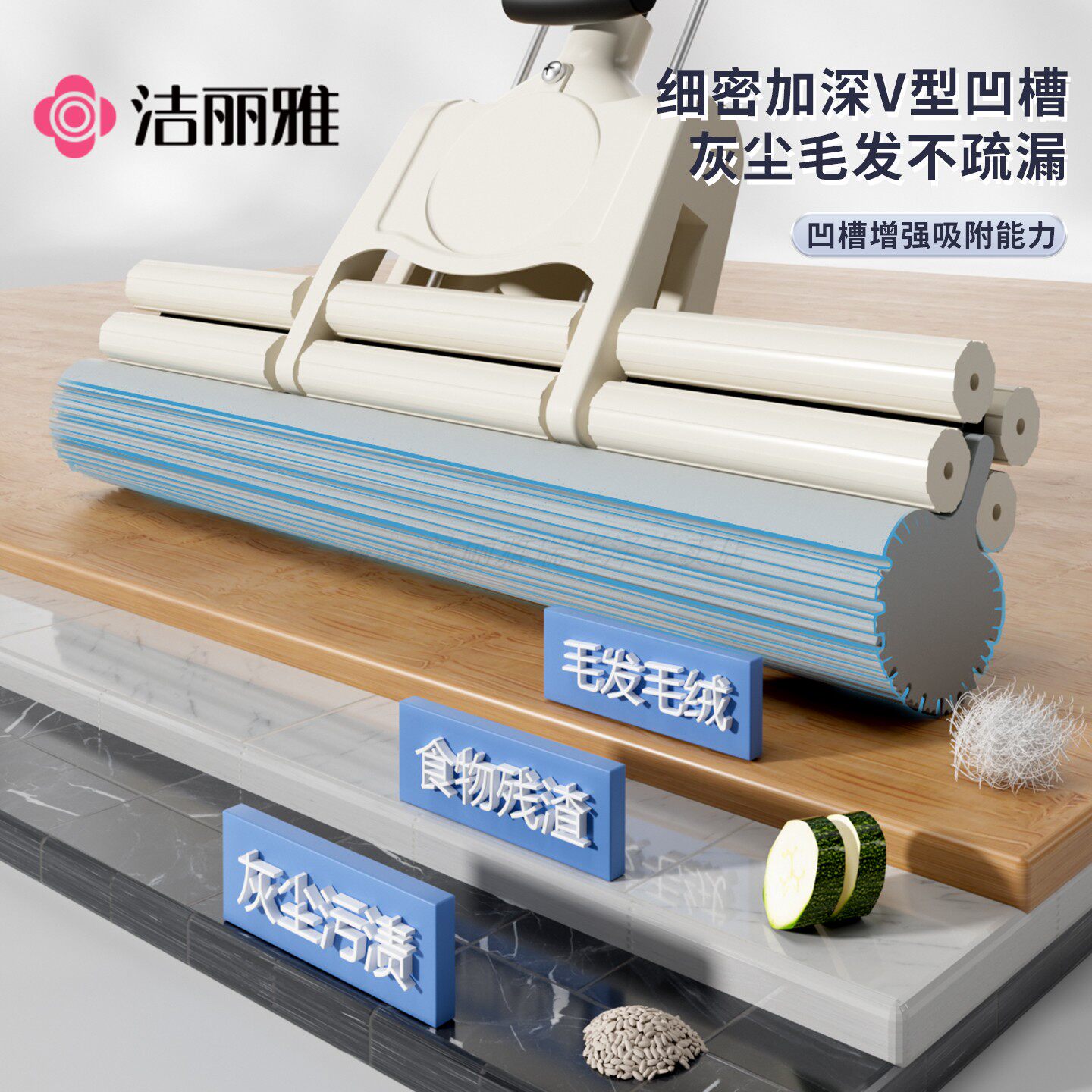 洁丽雅海绵吸水拖把家用拖地免手洗胶棉拖布干湿两用2025新款地拖