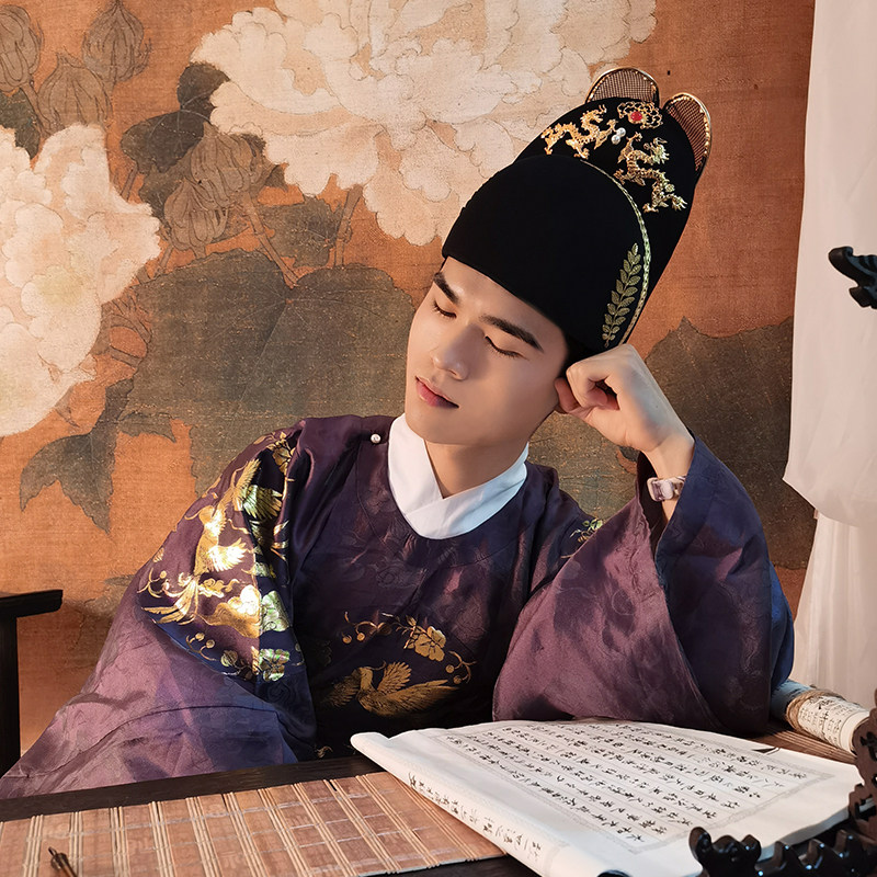 洛潇赋明制翼善冠原创乌纱帽折上巾汉服婚礼古代皇帝帽子官帽首服