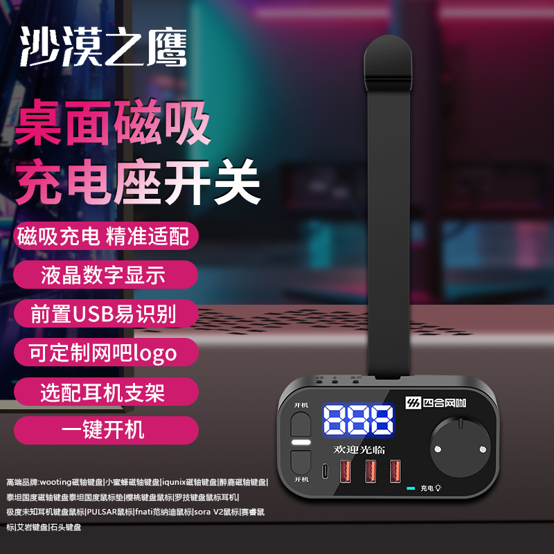 网吧桌面开关GPW鼠标充电拓展电竞网咖电脑无线呼叫开关+耳机支架