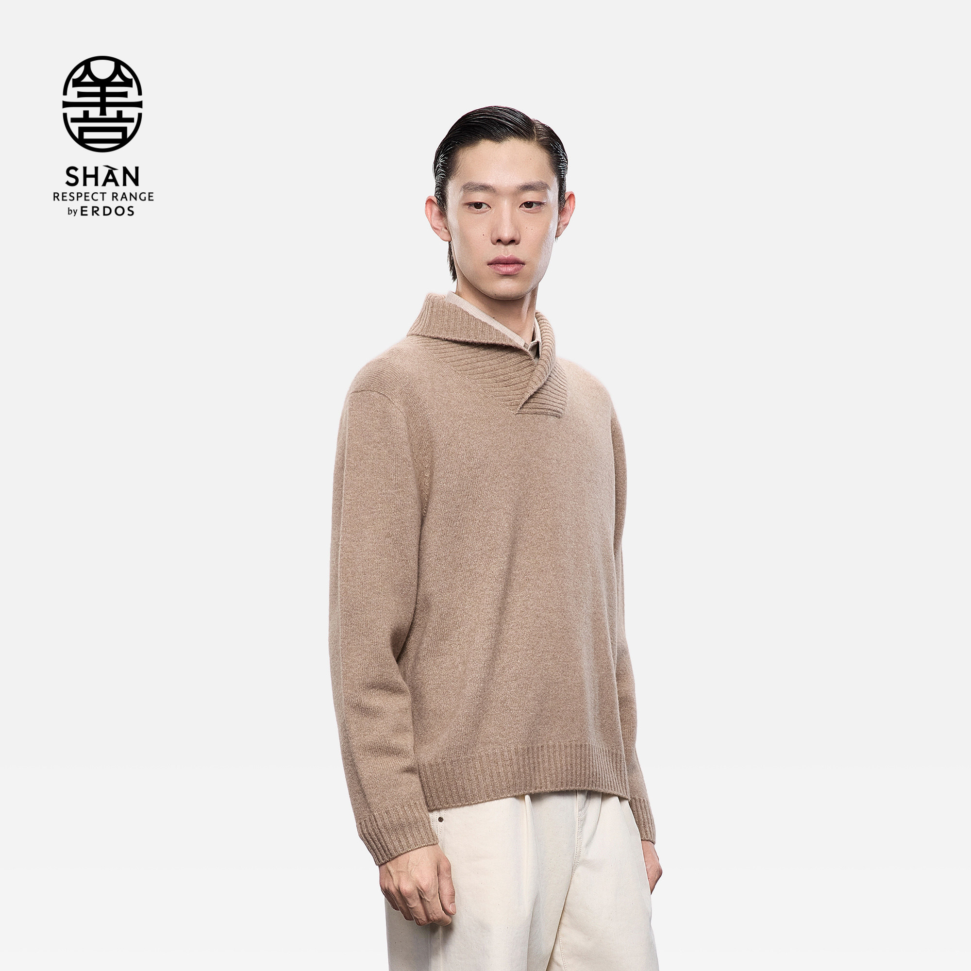 ERDOS 男装青果领羊绒衫25年秋冬新品纯色老钱风保暖针织套衫