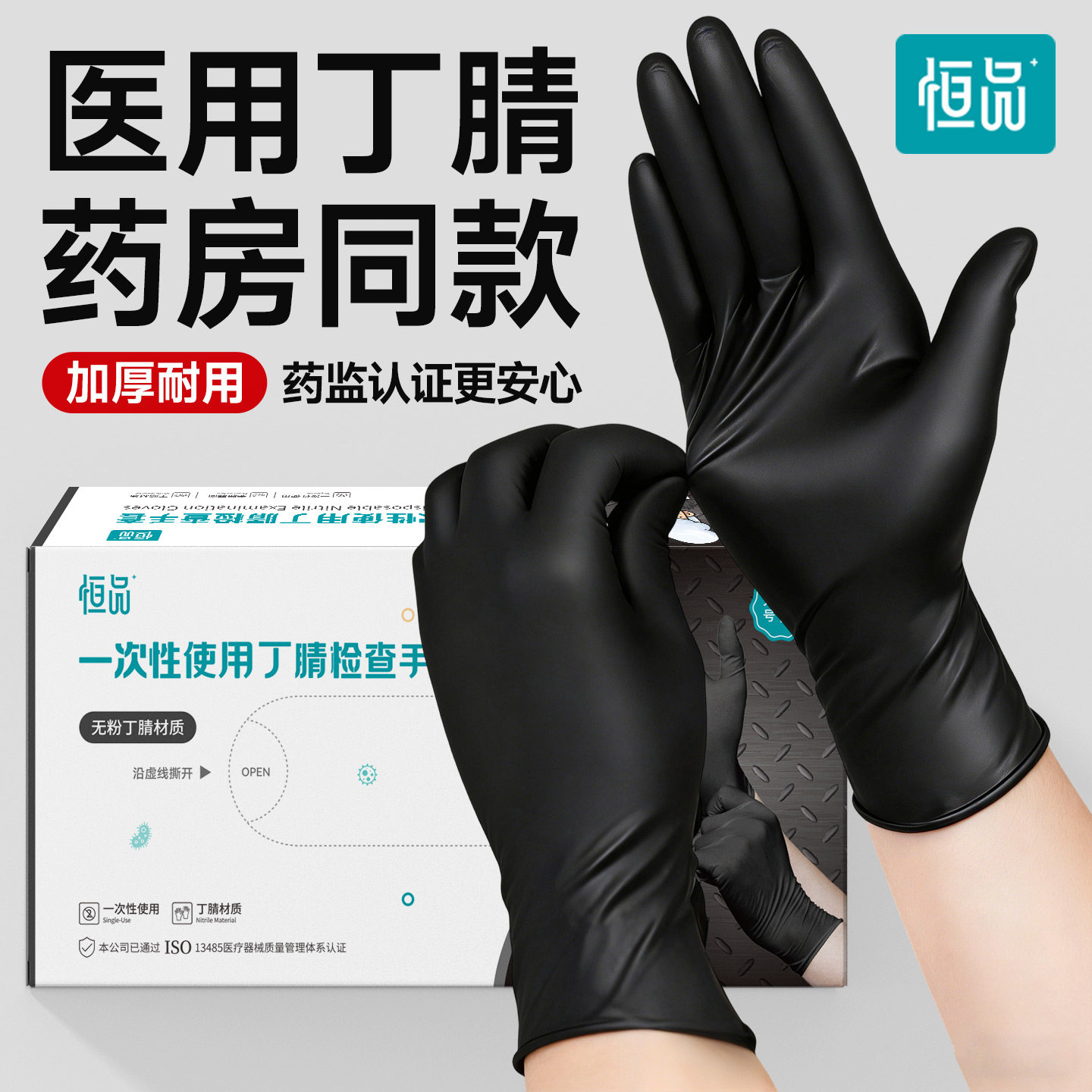 恒品医用手套一次性丁腈橡胶耐用加厚医疗外科手术检查官方旗舰店