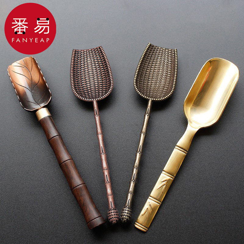 茶勺A1pq301-黑檀木茶匙实木铜小长柄茶铲子茶则日式功夫茶道配