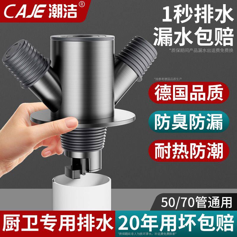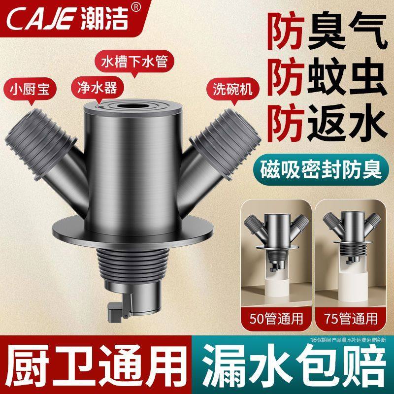 潮洁厨房三通下水管洗菜盆水槽三通排水管道防虫防臭防溢水神器