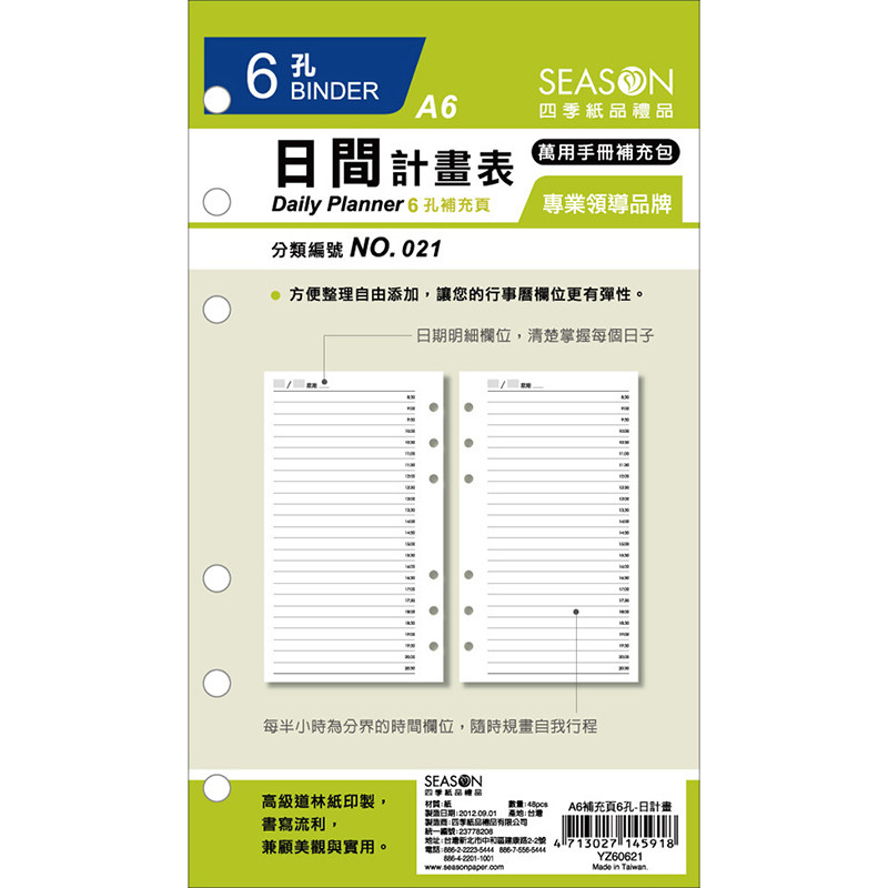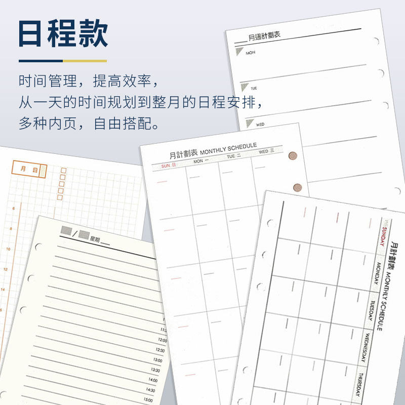 台湾四季手帐A6六孔活页纸6孔32K笔记本活页内芯 自填日历周月计划表 一日一页时间轴方格日程效率活页本替芯