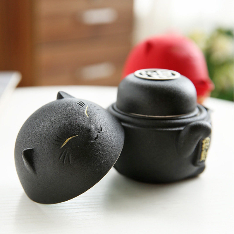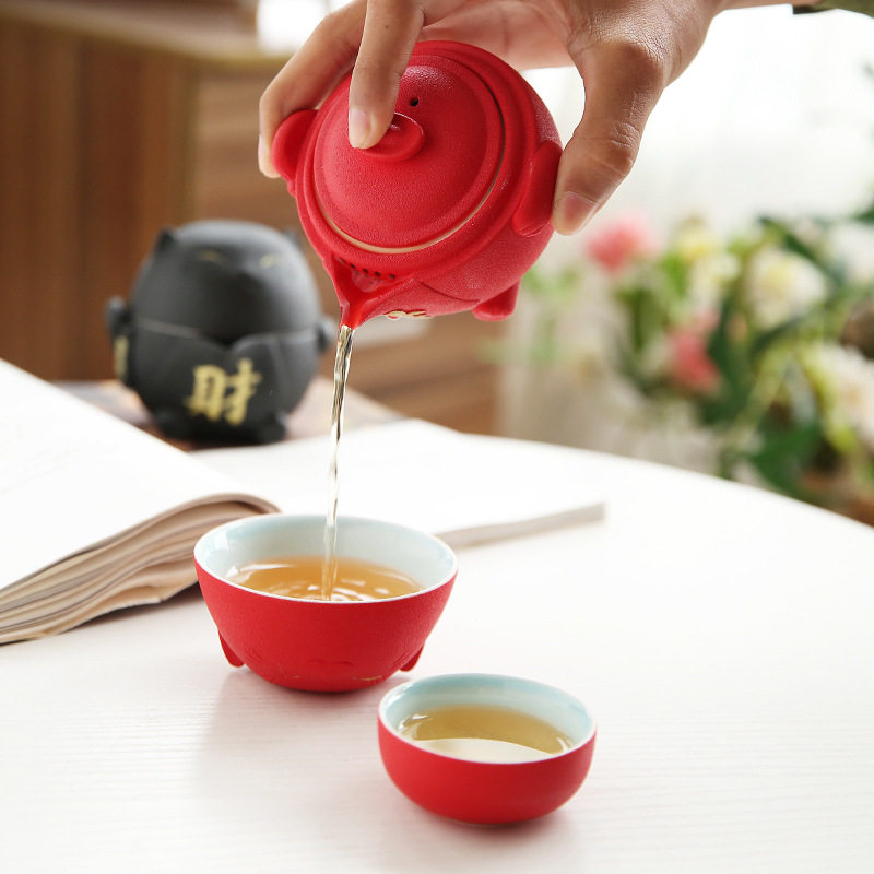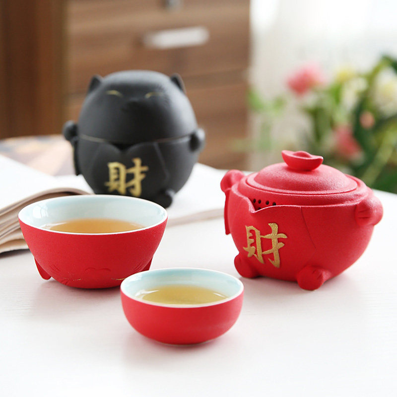 清仓捡漏陶瓷快客杯一壶二杯创意茶具套装单人招财猫中式旅行便携