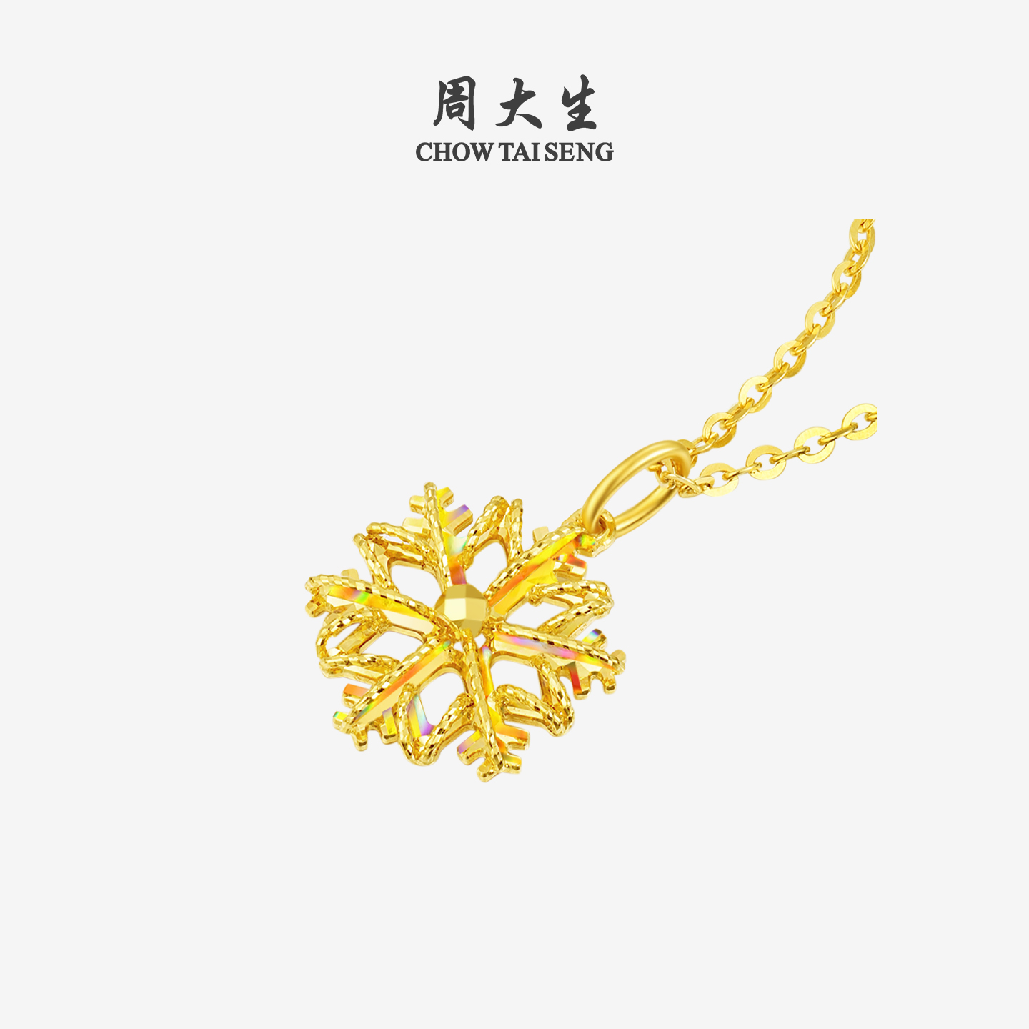 【圣诞礼物】周大生黄金吊坠女足金爆闪雪花项链挂坠平安夜送女友