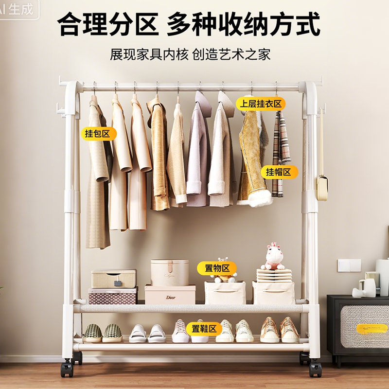 挂衣架落地家用卧室可移动衣帽架省空间大容量立式衣物收纳整理架