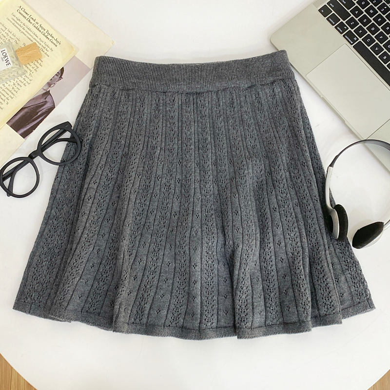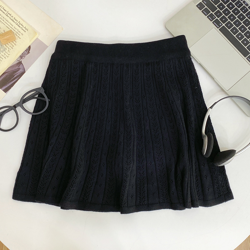 简约纯色百搭刺绣镂空高腰显瘦针织A字防走光半身裙短裙女秋冬
