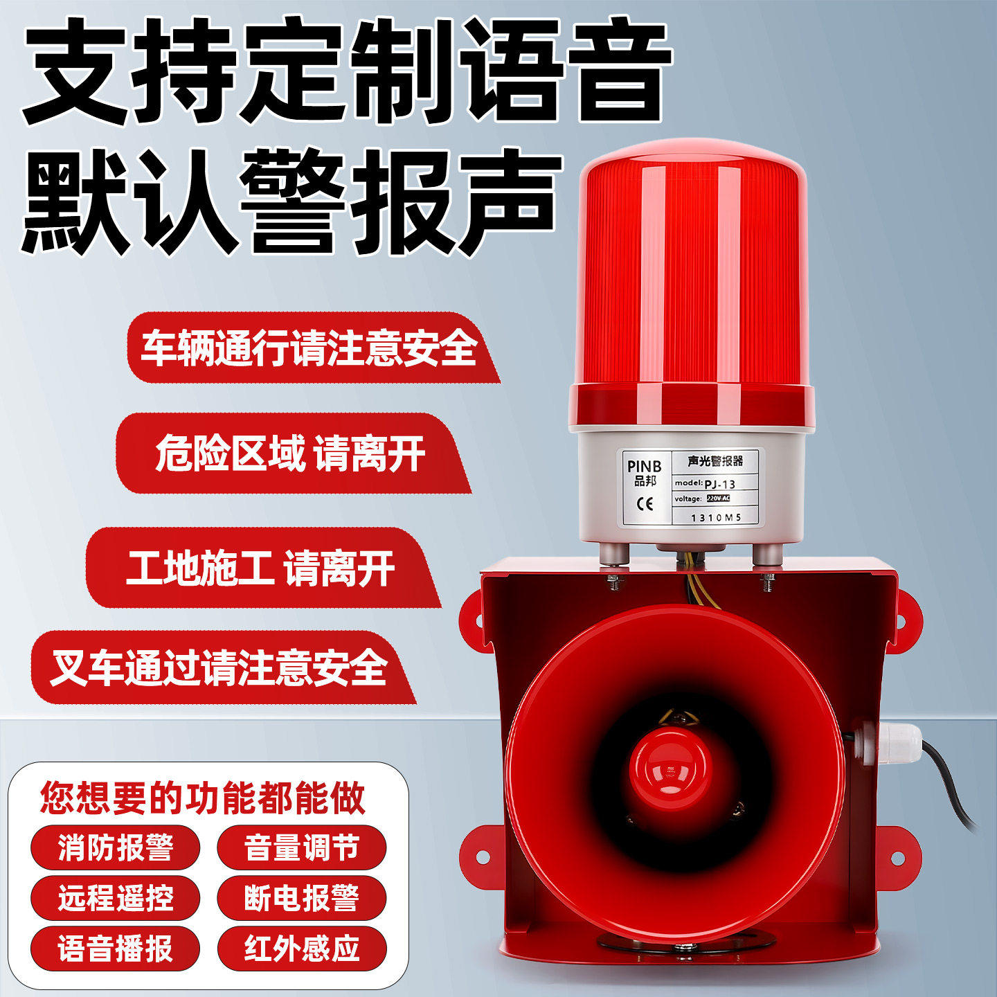 品邦工业大功率声光报警器220v无线语音喇叭一键式消防警铃PJ-13