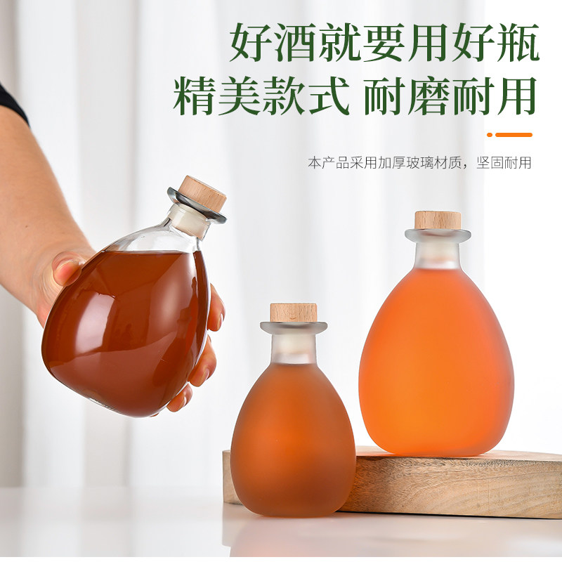 新款玻璃酒坛透明自酿果酒瓶高档密封葡萄酒白酒空瓶子蒙砂1斤
