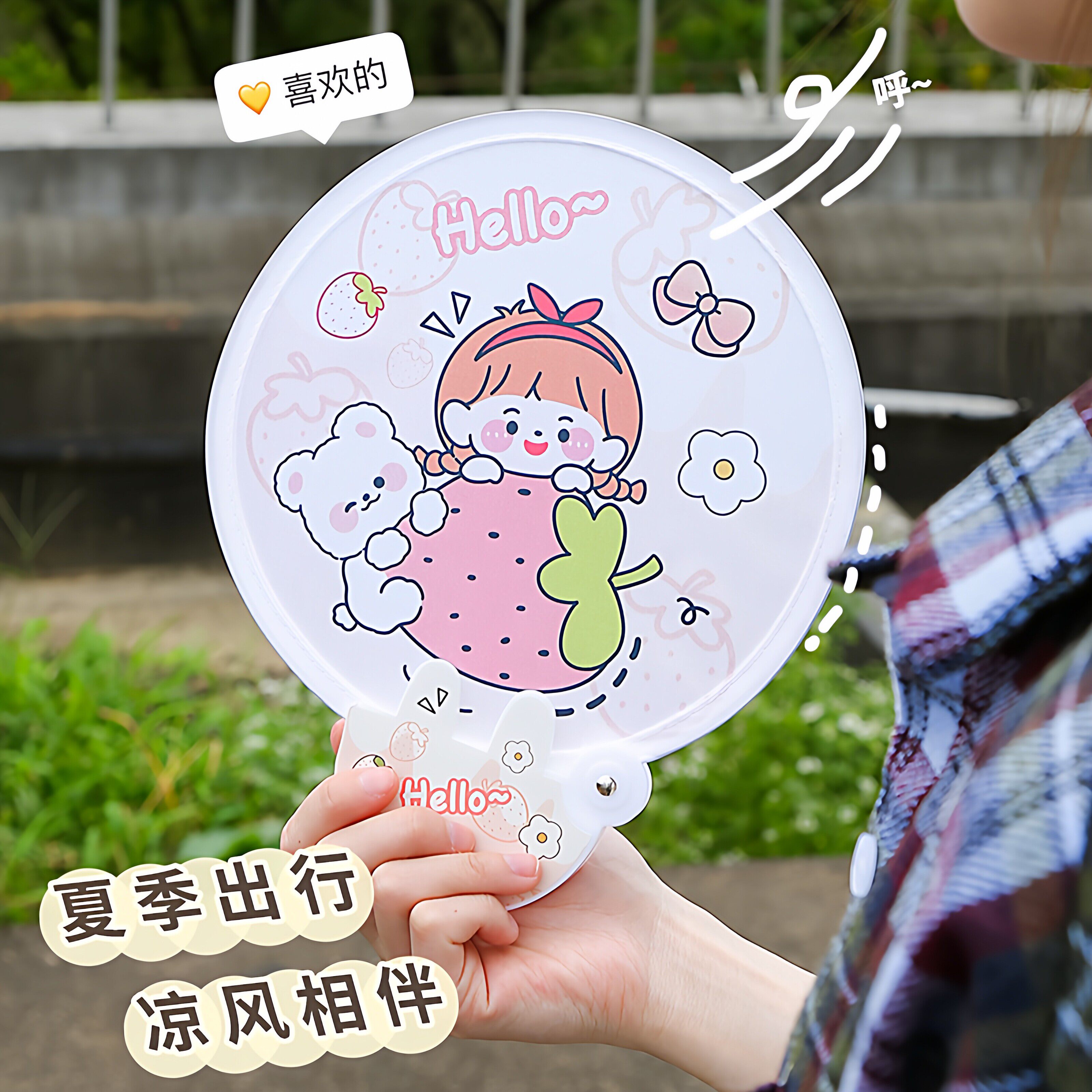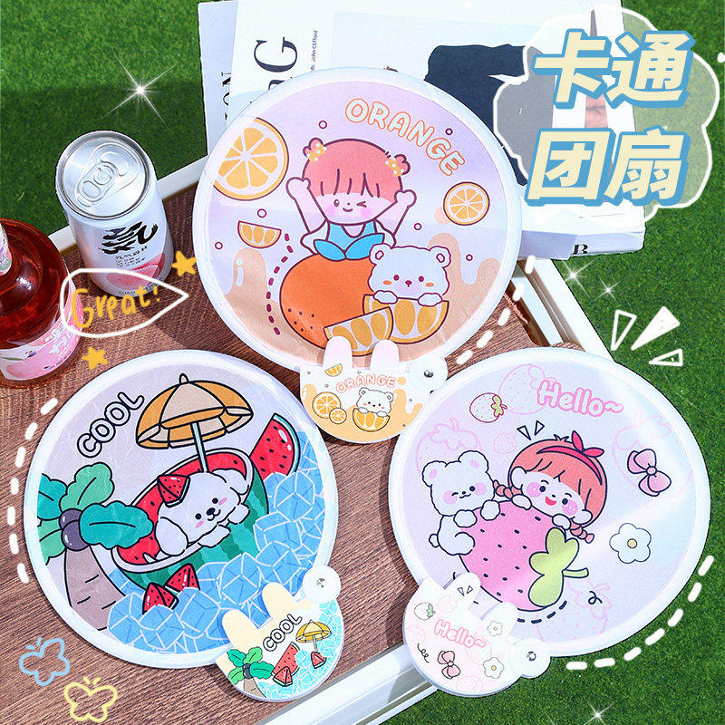 可爱团扇折叠扇子迷你布面口袋手摇扇儿童学生便携随身小圆扇