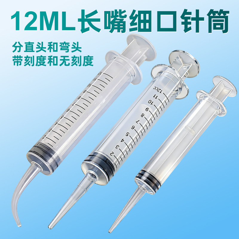 12ML塑料针筒点胶加墨抽油化妆品分装手动冲洗器无针长嘴注射针管