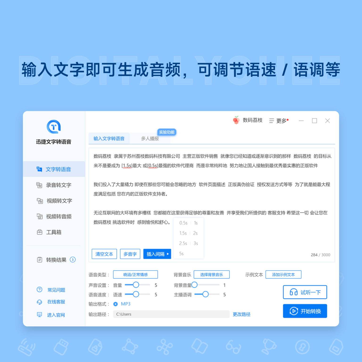 迅捷文字转语音[Mac/Win]会议音频/录音/视频转换文本mp3电脑软件