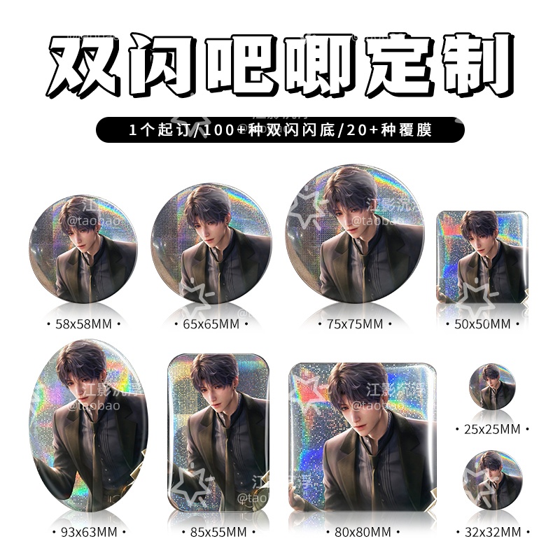 马口铁65MM吧唧定制谷子徽章双闪自印迷你反光光栅烫金泡面二次元