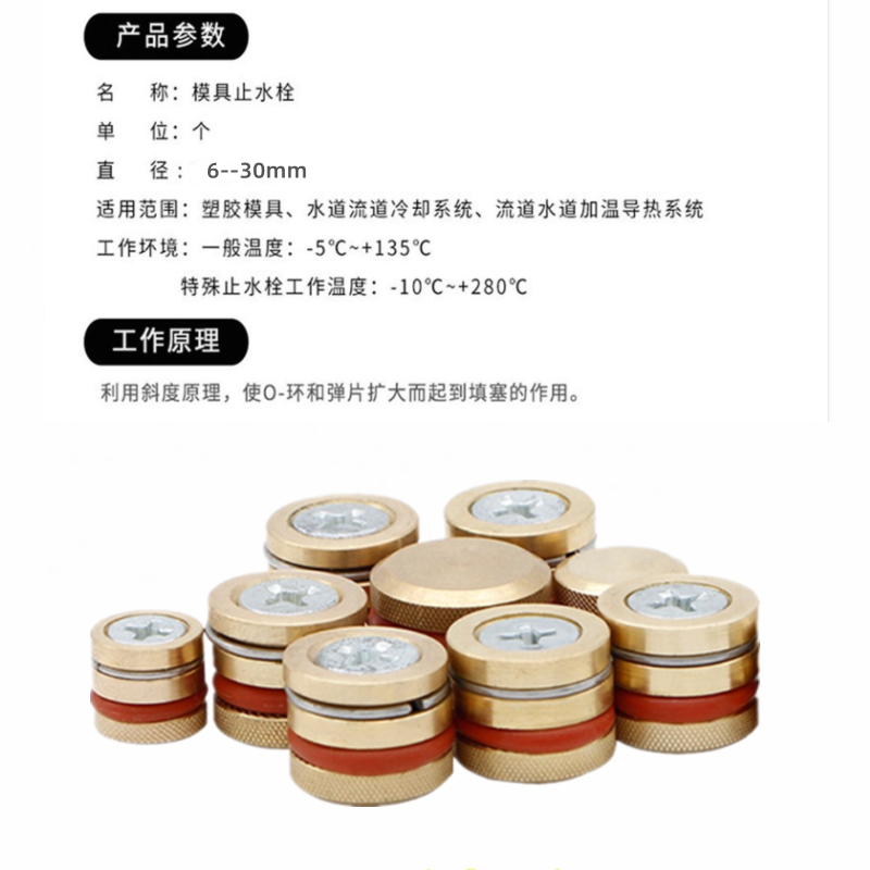 注塑模具止水栓止水塞水柱塞冷却水铜堵头水柱栓耐高温6/8/10/12