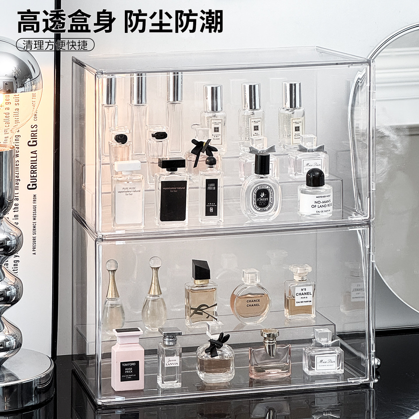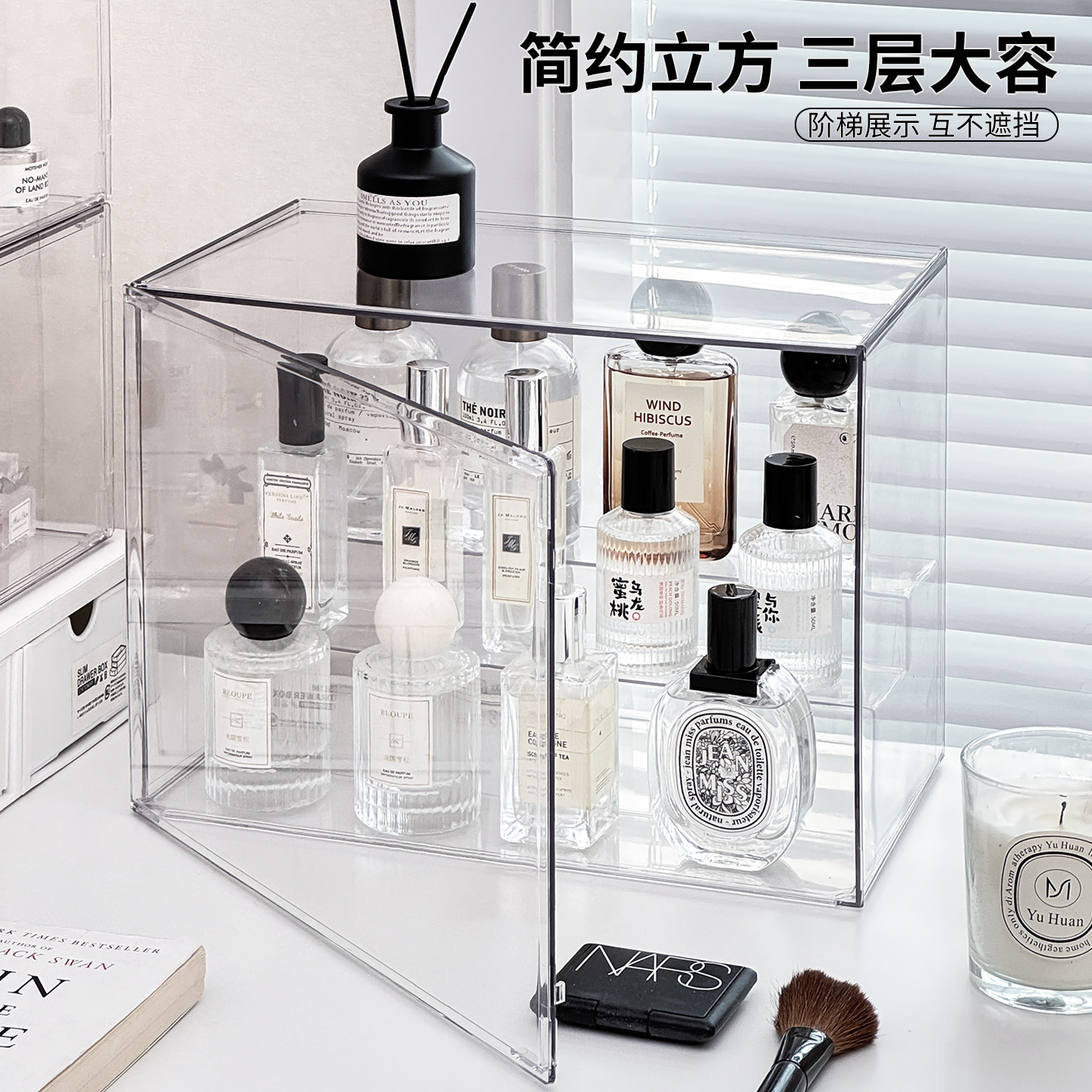 香水置物架Q香小样收纳盒透明亚克力阶梯香薰整理展示架防尘柜子