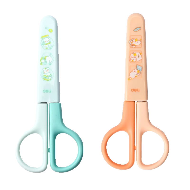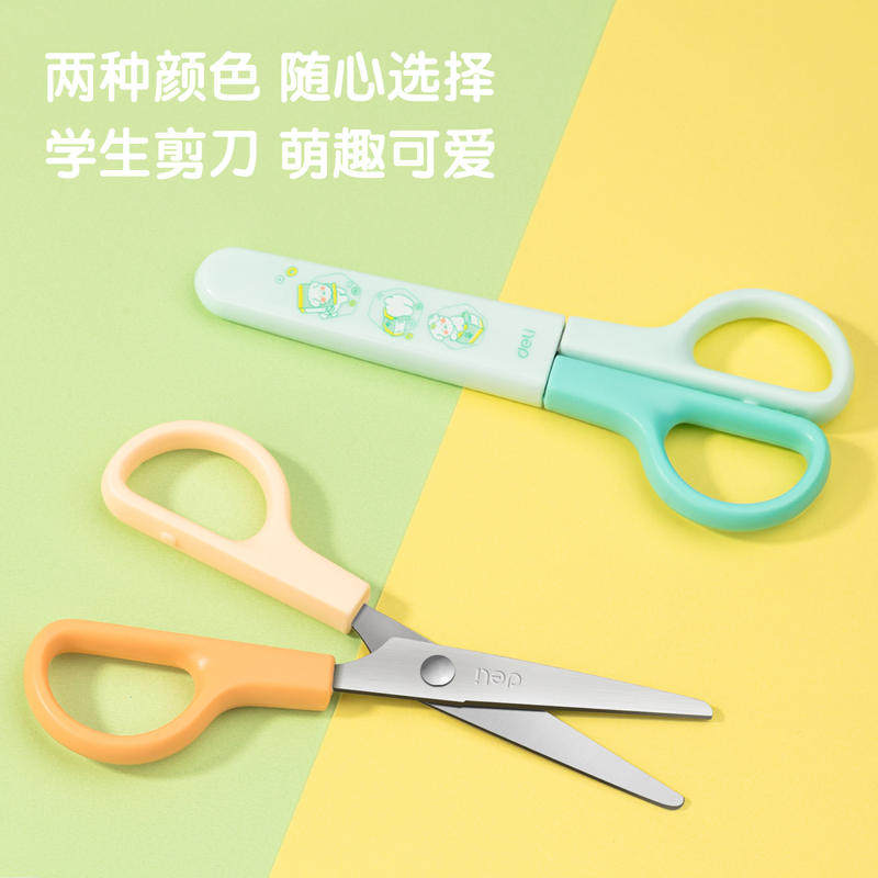 得力儿童剪刀手工安全剪子小学生diy剪纸不伤手带保护套专用圆头