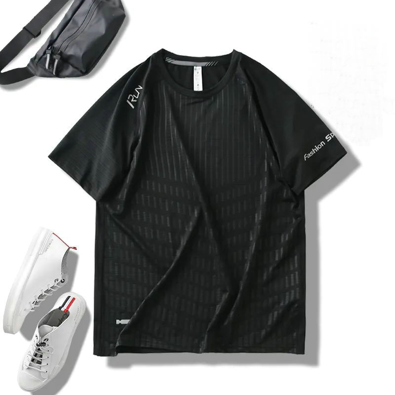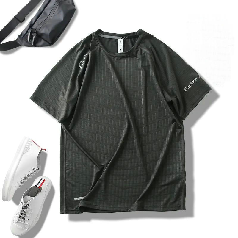 外贸男装!2025夏ins时尚印花透气速干短袖健身骑行跑步运动T恤男