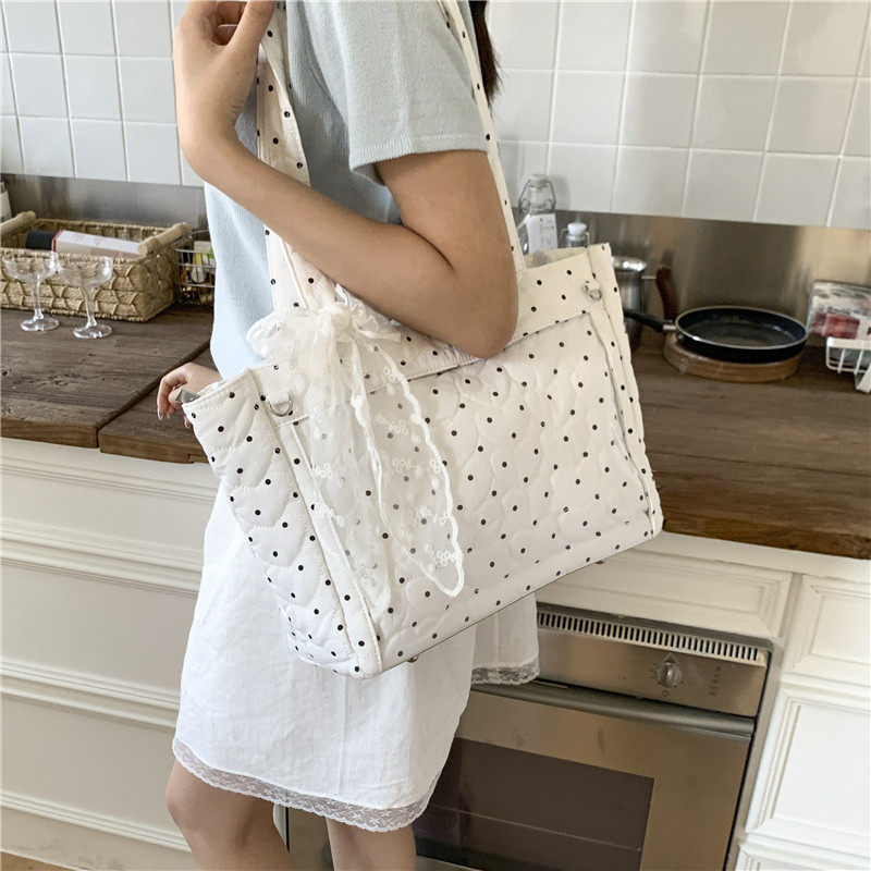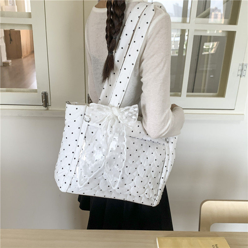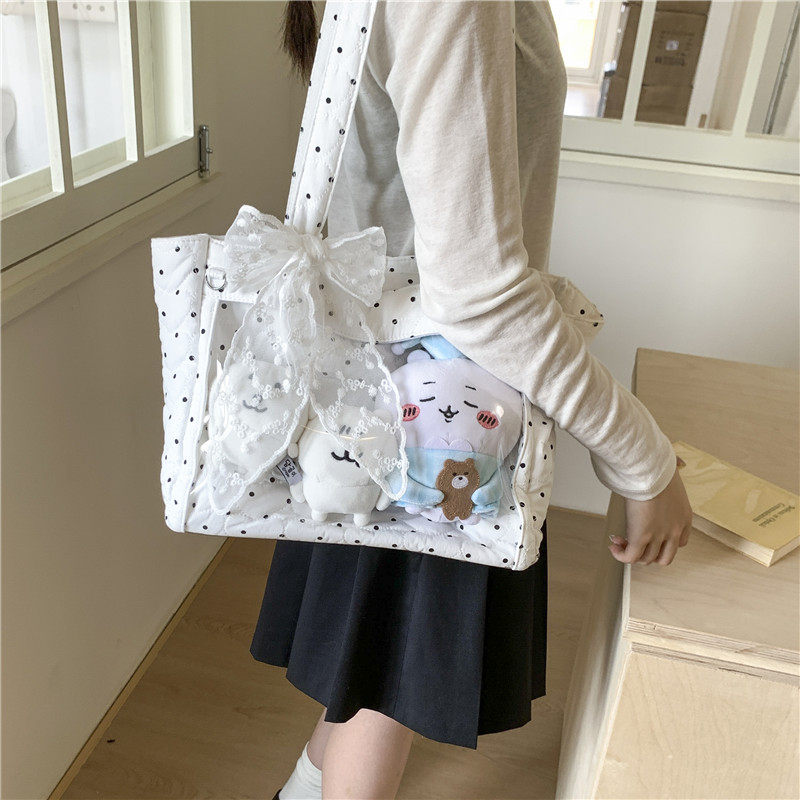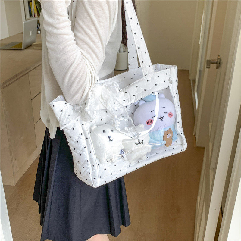 韩系新款大容量托特包女波点透明痛包百搭蕾丝单肩包轻量化手提包