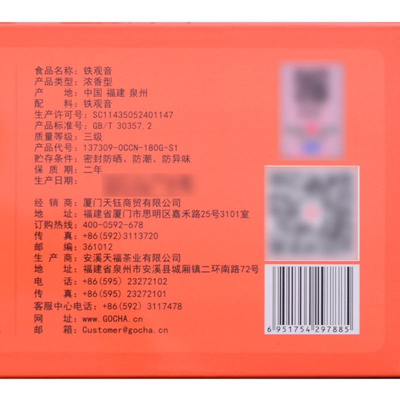 买1发2 天福茗茶 铁观音浓香型炭焙安溪茶叶铁观音乌龙茶180克