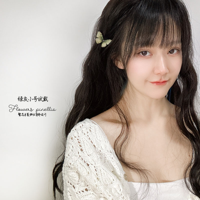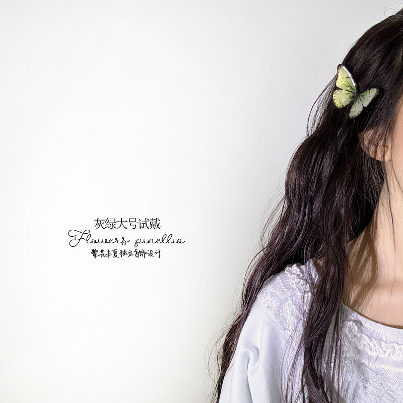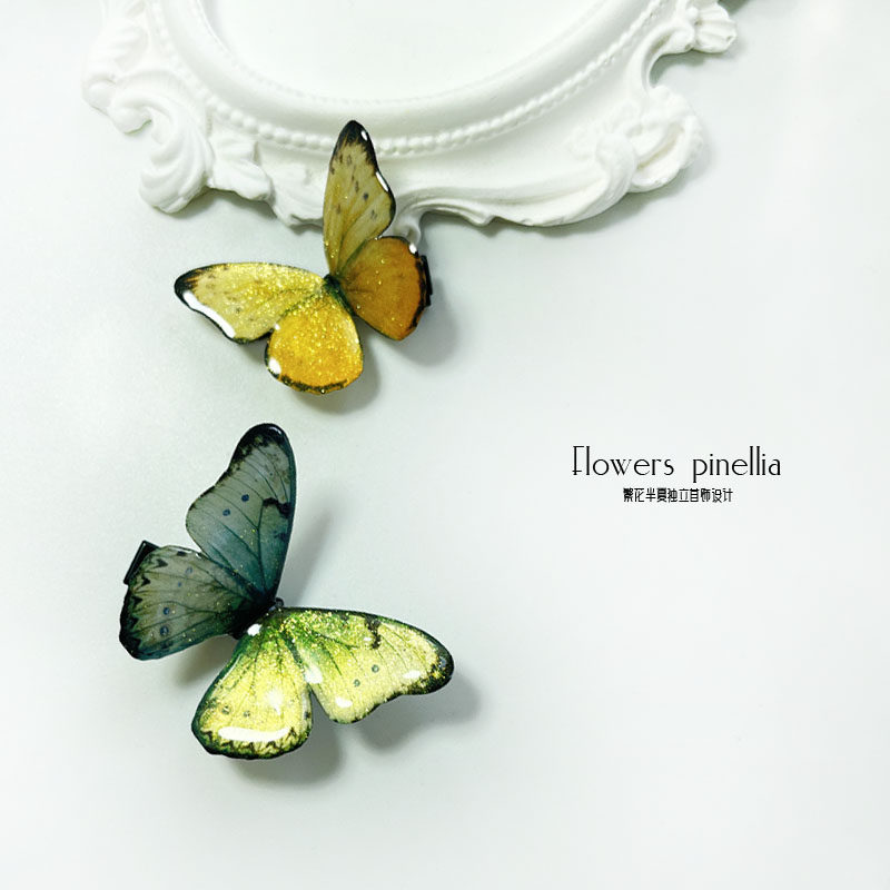 黄色绿色仿真蝴蝶边夹发夹一字夹侧边鸭嘴夹头饰古风旅拍配饰女