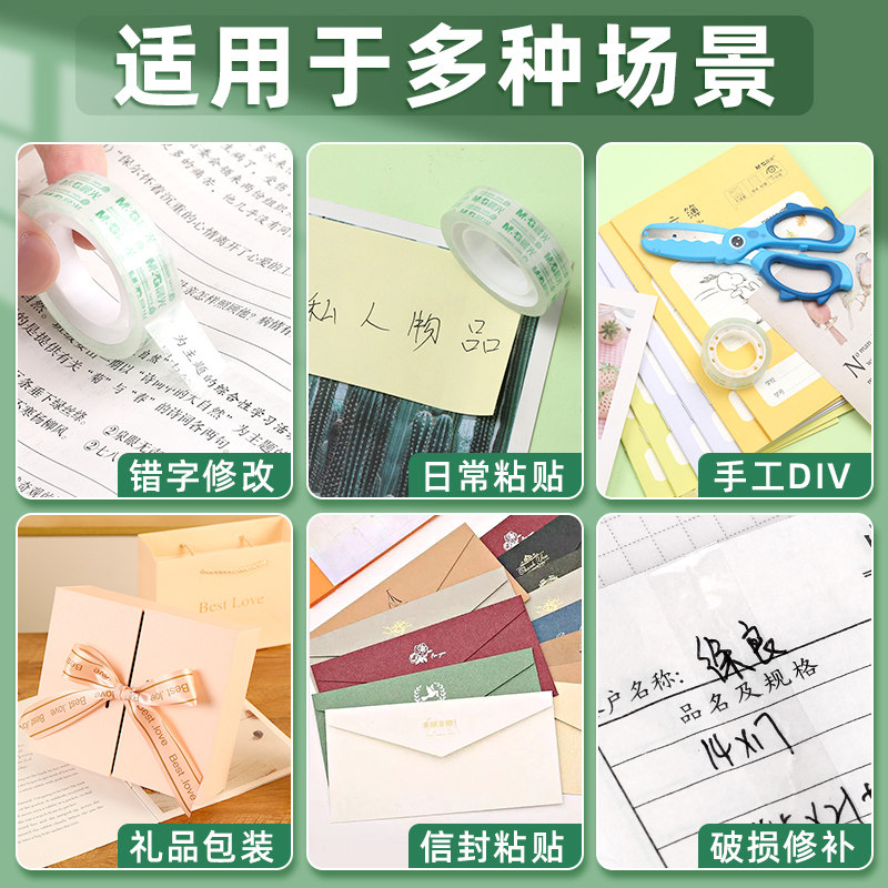 晨光高透明胶带学生用高粘性小卷胶条12mm宽胶纸超强办公封口文具小号多功能胶布错题不留胶可粘字做手工神器