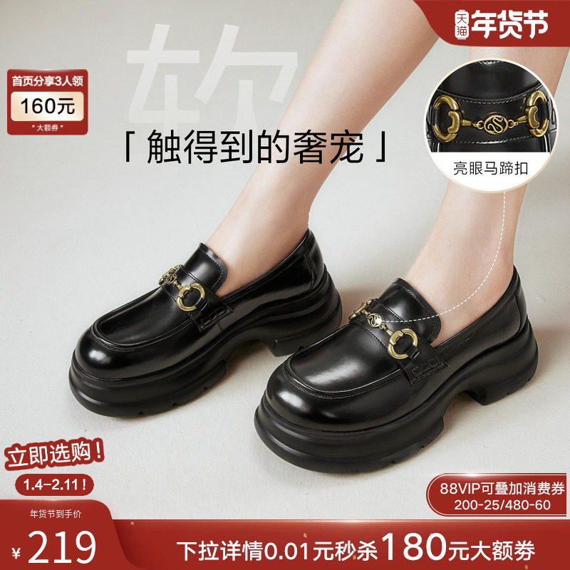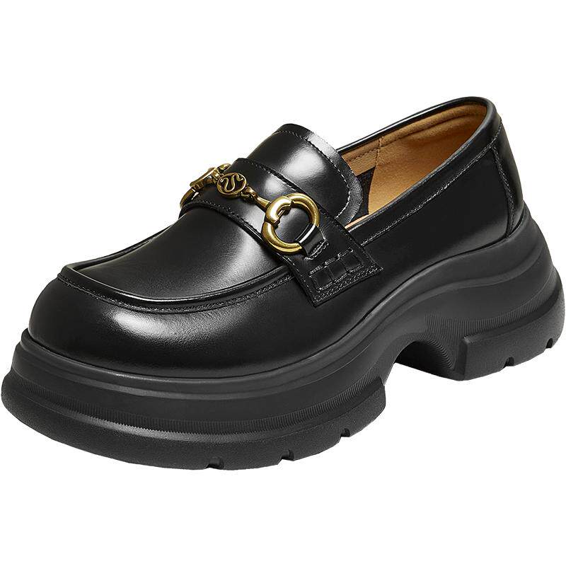 百思图2025秋商场新款牛皮厚底增高乐福鞋通勤深口女单鞋VZF14CA5