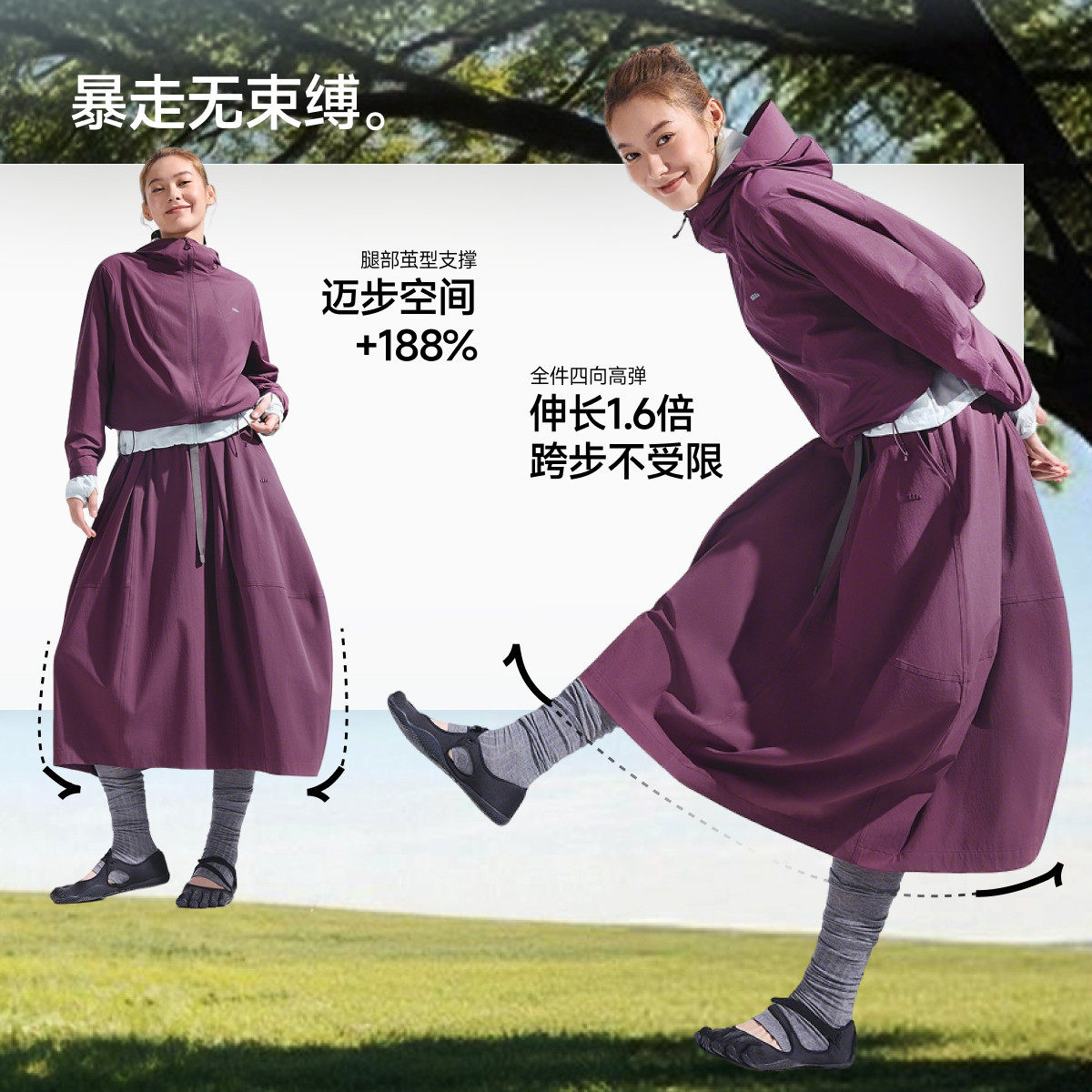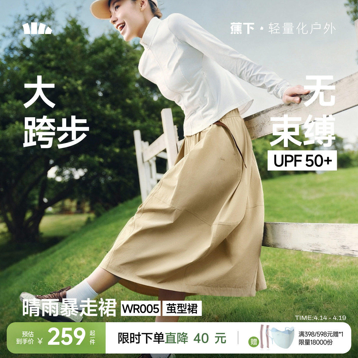 蕉下女士户外花苞裙防晒半身裙女松紧腰茧型半身长裙新款显瘦裙子