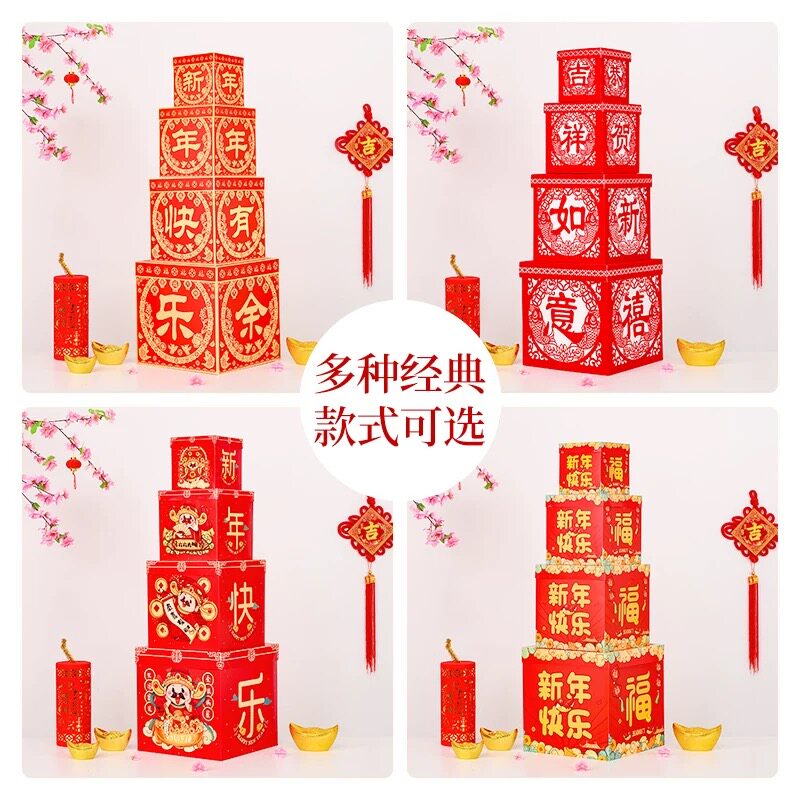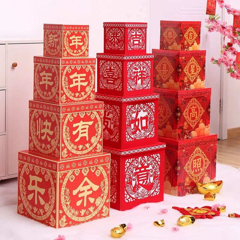 新年装饰品礼盒商场橱窗场景布置堆头摆件春节过年纸质套装礼物盒