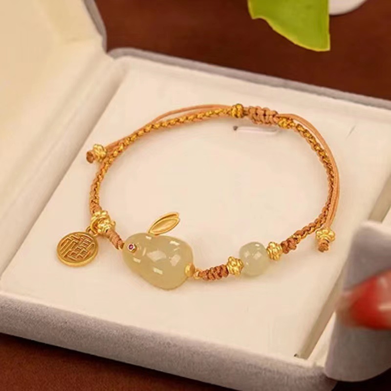 普陀山天然和田玉红玛瑙玉兔手链本命年兔饰品送妈妈生日朱砂手串