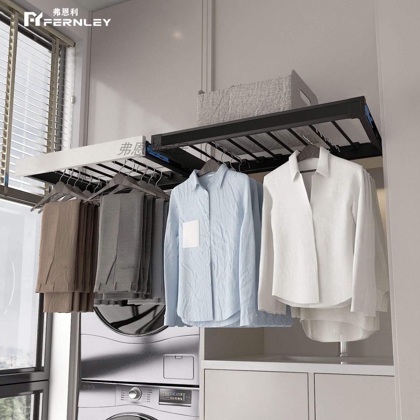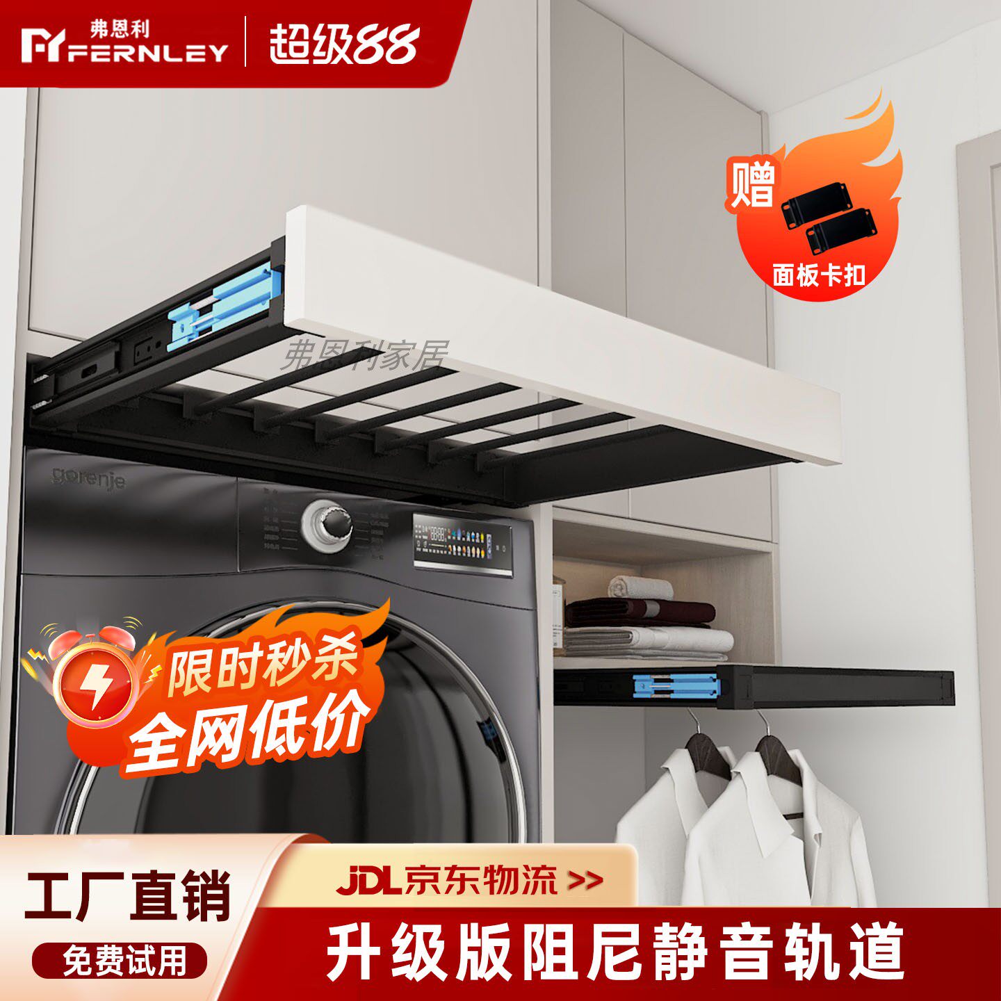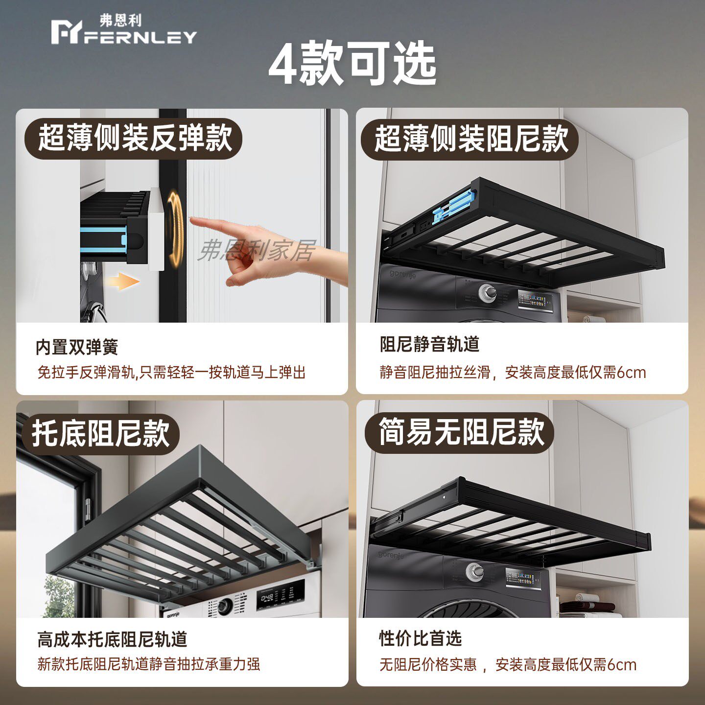 洗衣机抽拉衣架置物架隐形烘干机伸缩晾衣架裤架阳台柜上方挂衣杆