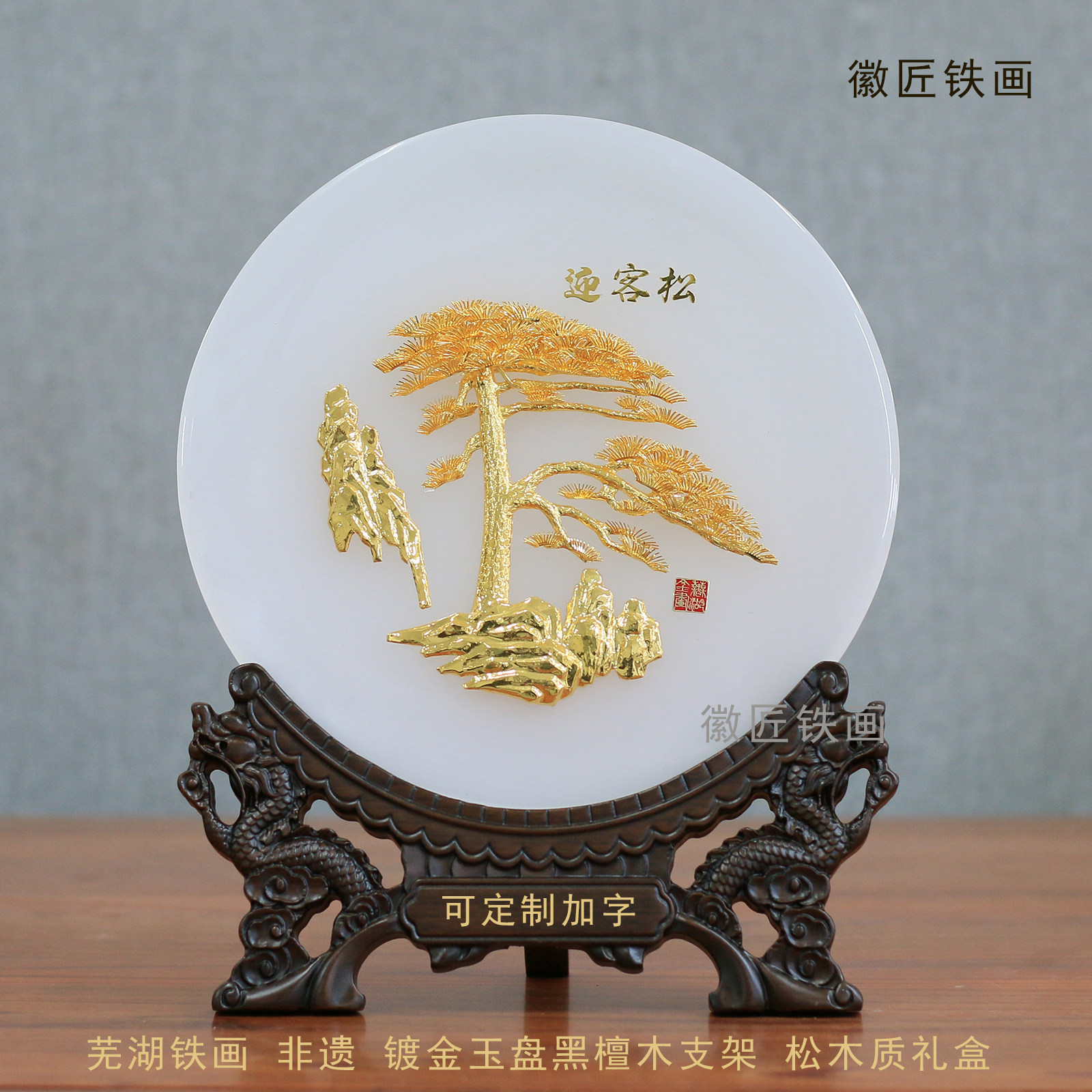 芜湖铁画镀金迎客松非遗手工艺安徽特色伴手礼品特产可定制刻字