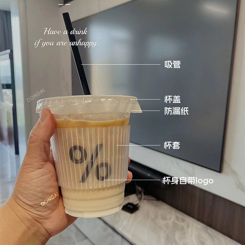 一次性咖啡杯防漏冷饮杯高级感ins带盖透明冷饮奶茶定制logo