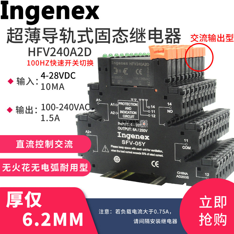 超薄导轨式光耦固态继电器模组模块HFV050D 24V 220v直流控直交流