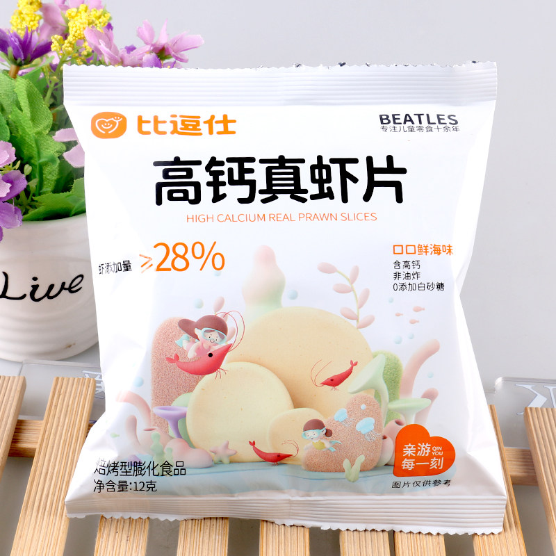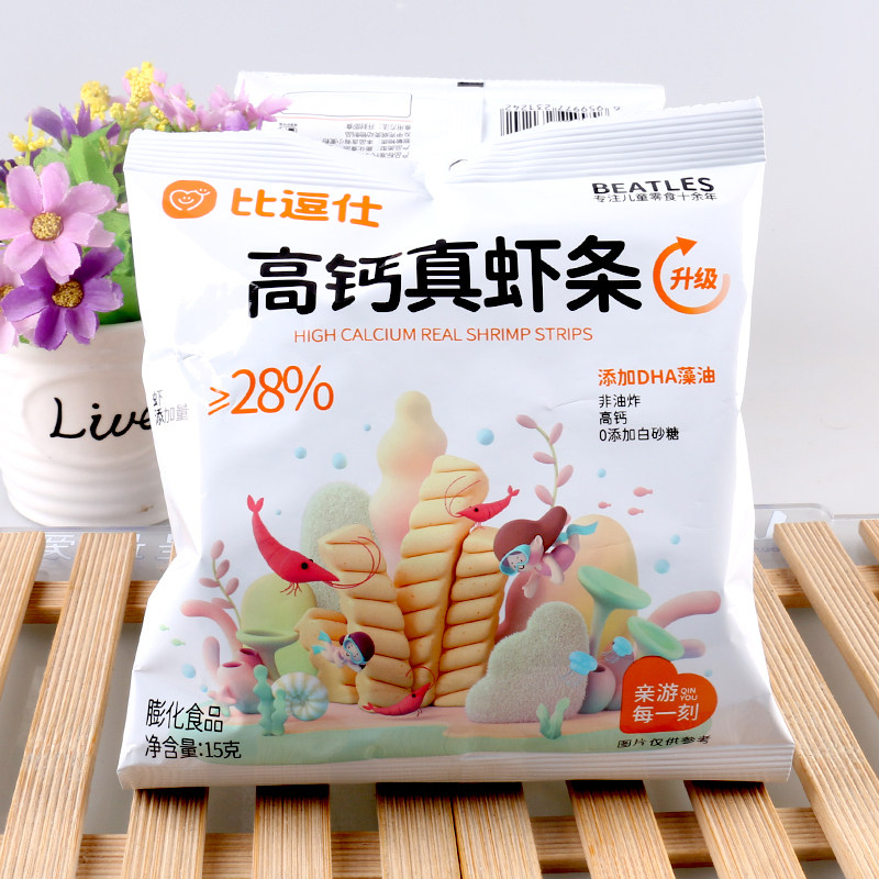 比逗仕高钙真虾条5连包非油炸食品儿童休闲小零食海苔味含DHA藻油