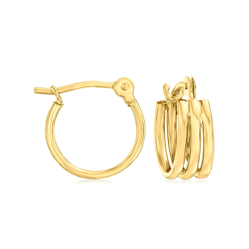 自营 Ross-Simons 14kt 黄金 3-Row Huggie Hoop 耳环 - 黄色 美