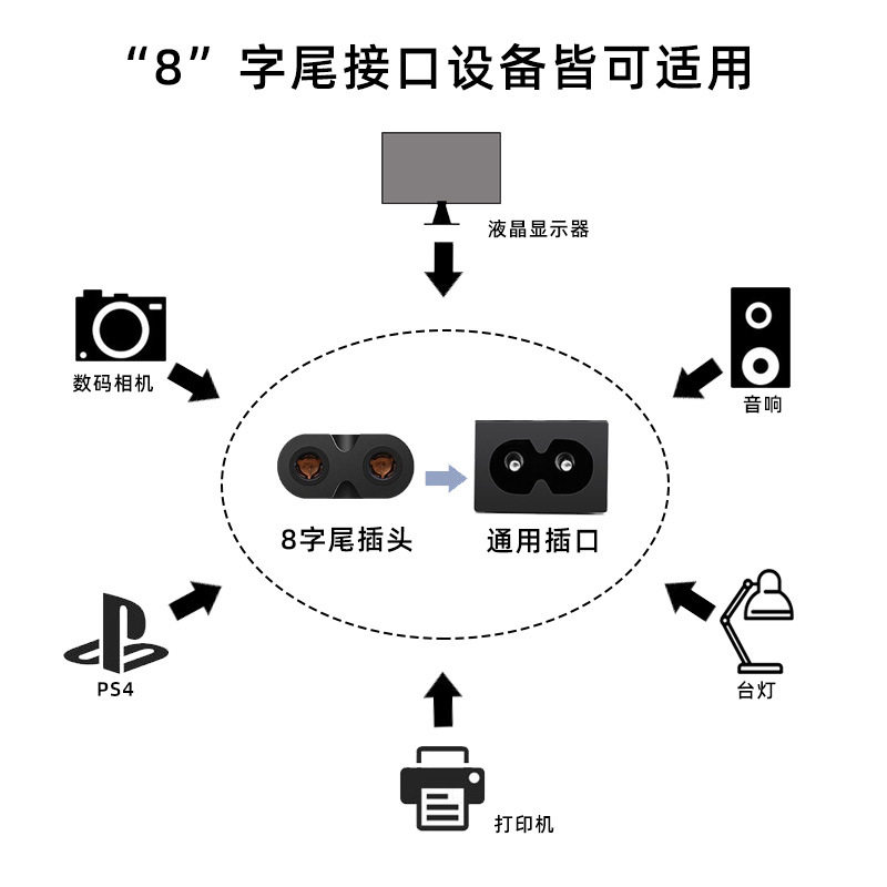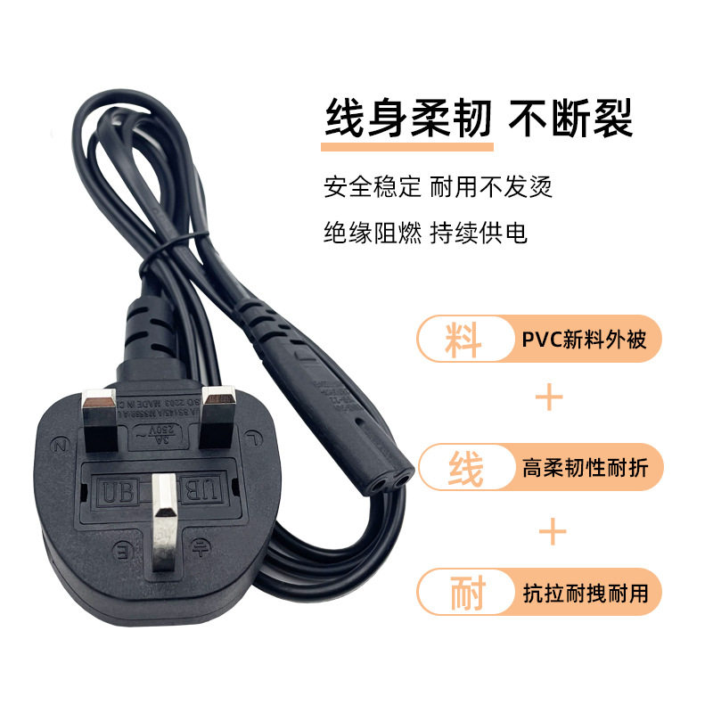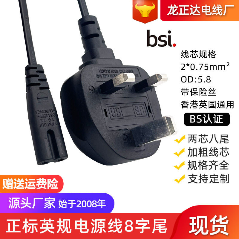 纯铜BS认证大英规八字尾电源线 英标插头带保险丝8字尾英式电源线